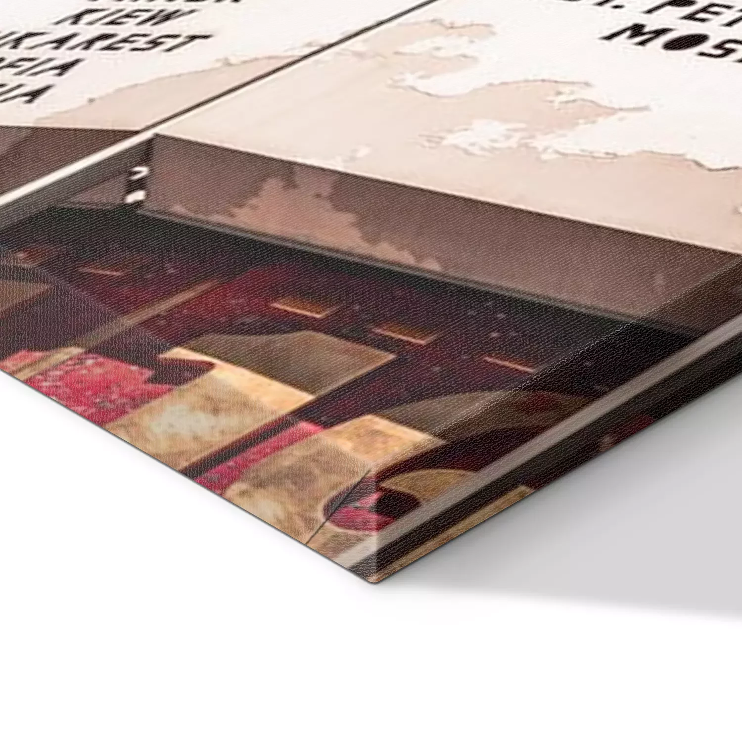 De print wordt aangebracht op hoogwaardig canvas dat op een schildersweefgetouw (spieraam) wordt gespannen. Omdat de print de zijranden bedekt, hoeft het ontwerp niet met een extra kader te worden omlijst. Wij raden ook composities aan die uit meerdere foto's bestaan en zo een coherente compositie vormen.