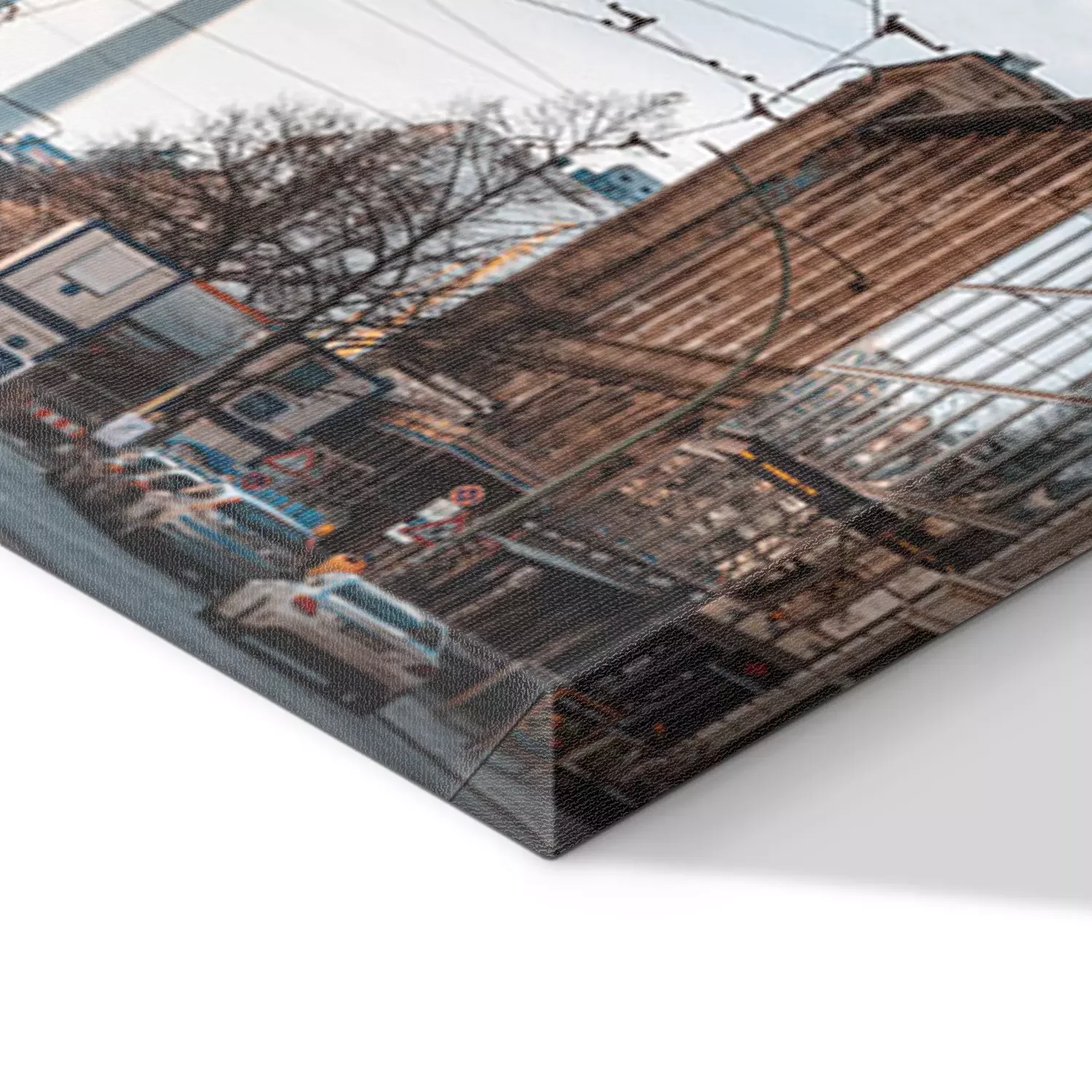 De print wordt aangebracht op hoogwaardig canvas dat op een schildersweefgetouw (spieraam) wordt gespannen. Omdat de print de zijranden bedekt, hoeft het ontwerp niet met een extra kader te worden omlijst. Wij raden ook composities aan die uit meerdere foto's bestaan en zo een coherente compositie vormen.