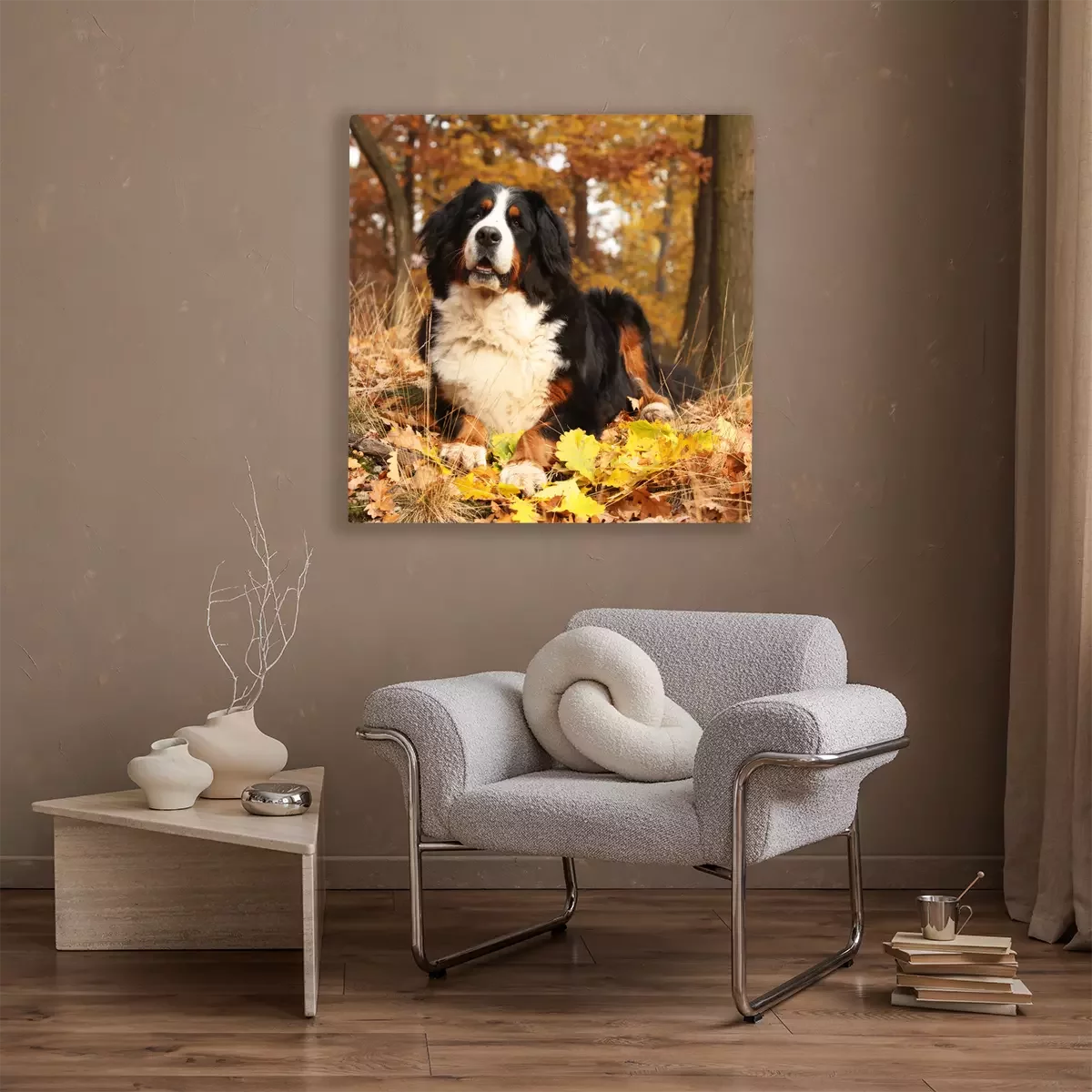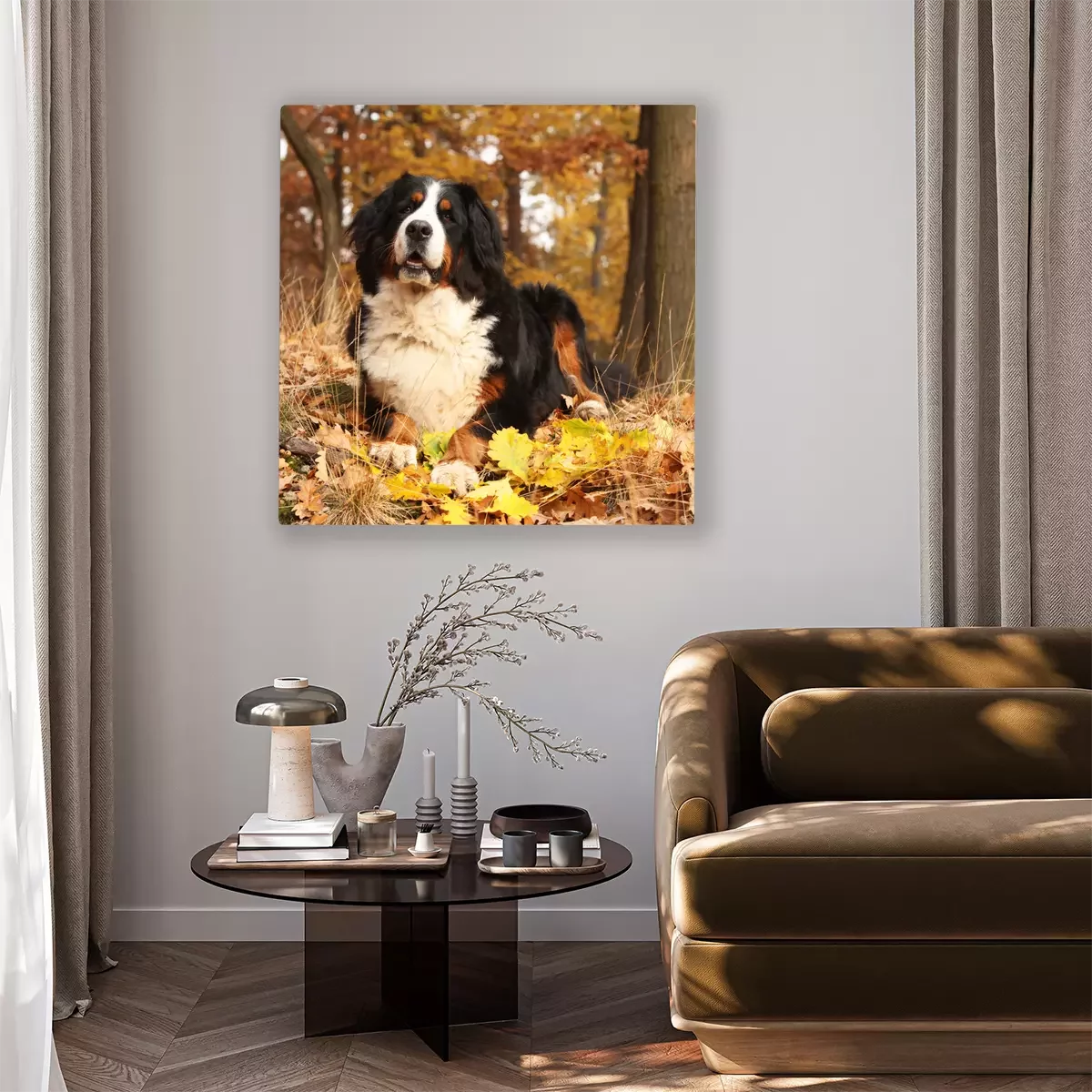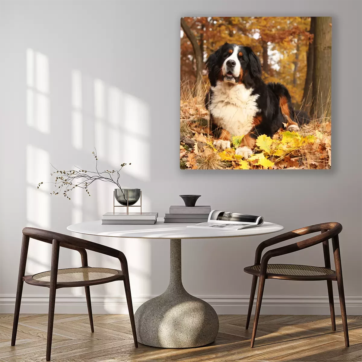 Canvas: Berner Sennenhond in het bos
