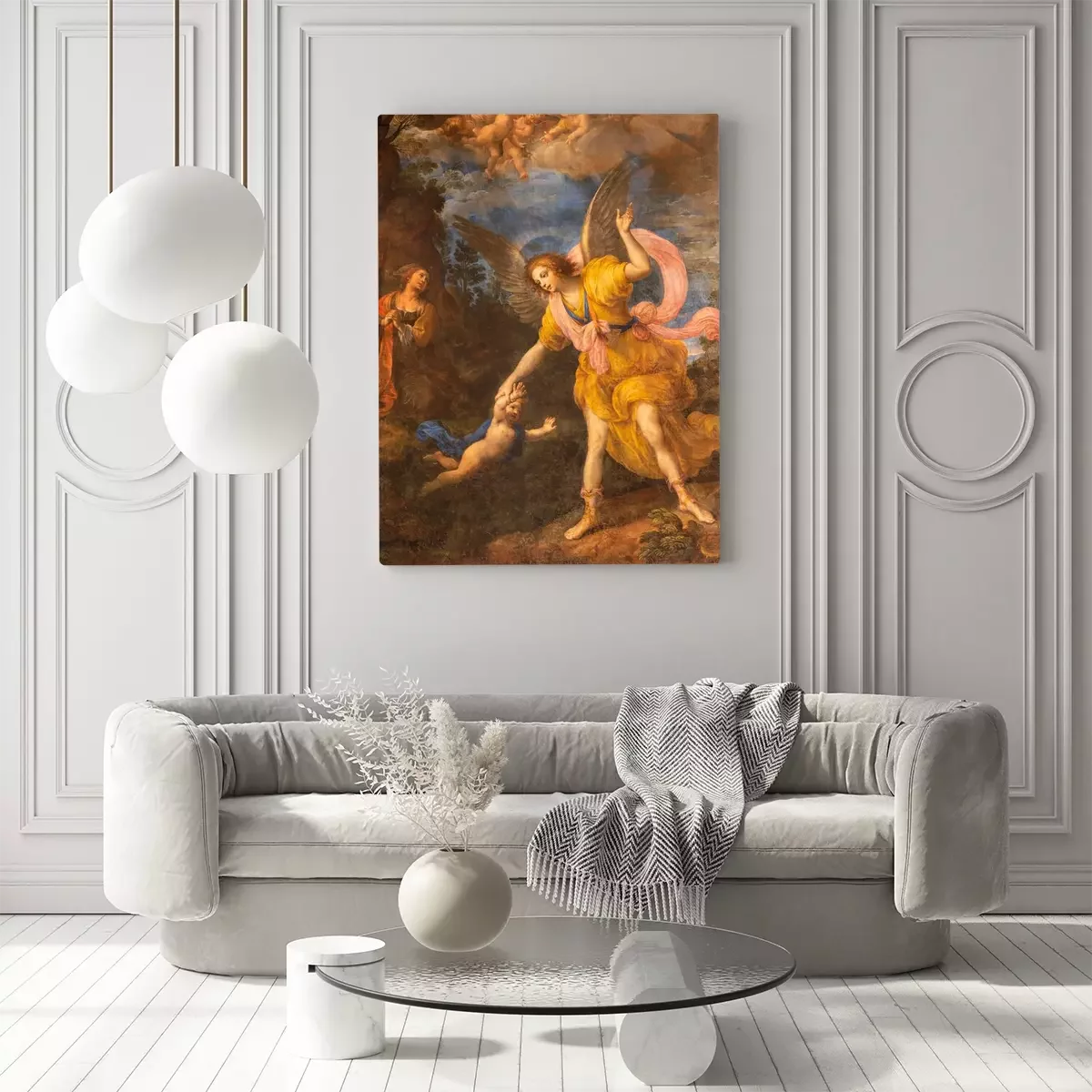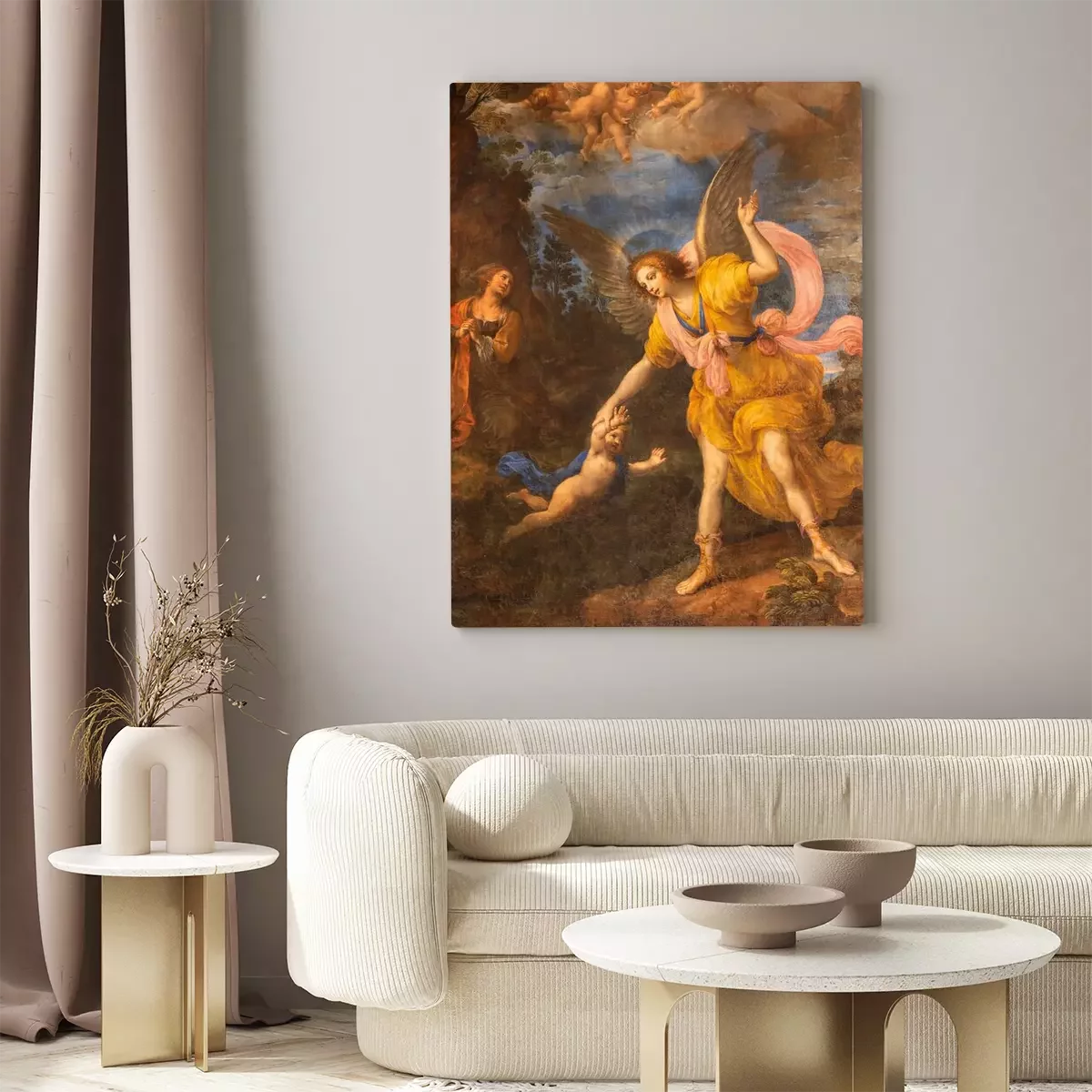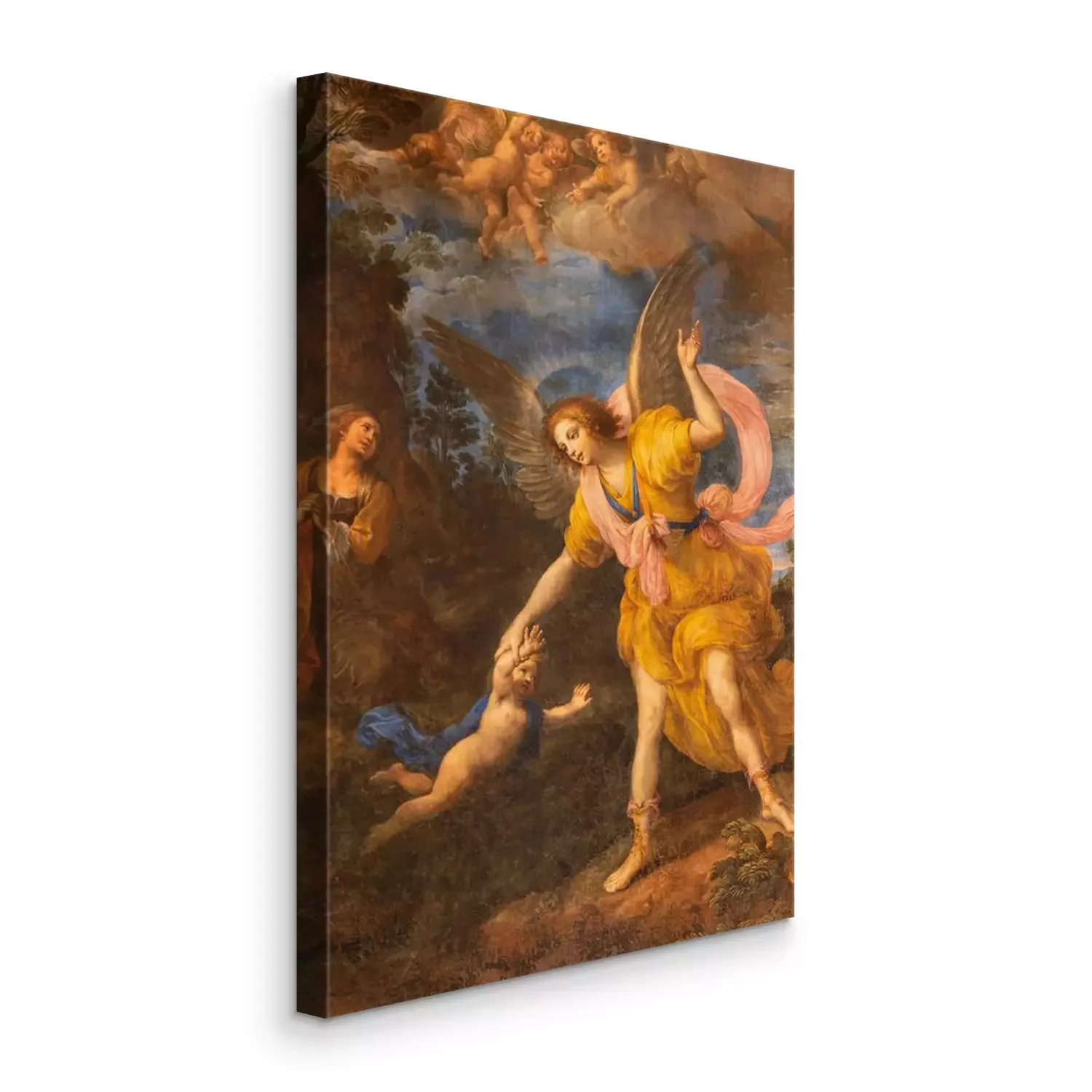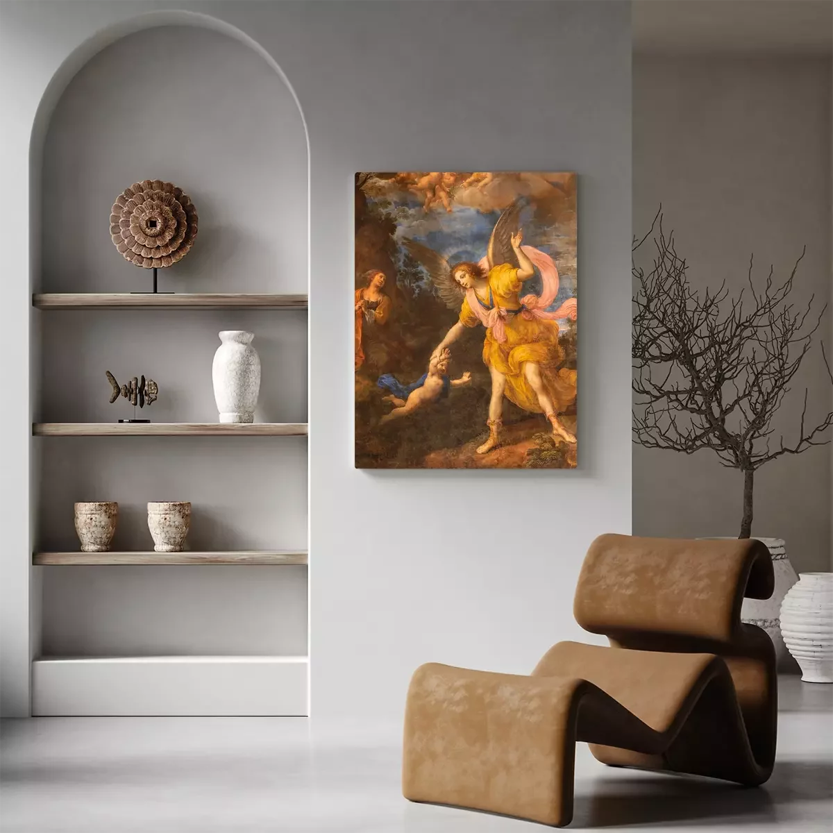 Canvas: Beschermengel houdt een kind bij de hand vast