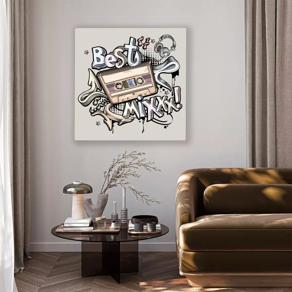 Canvas Beste mix - muziekontwerp met audiocassette en graffitipijlen