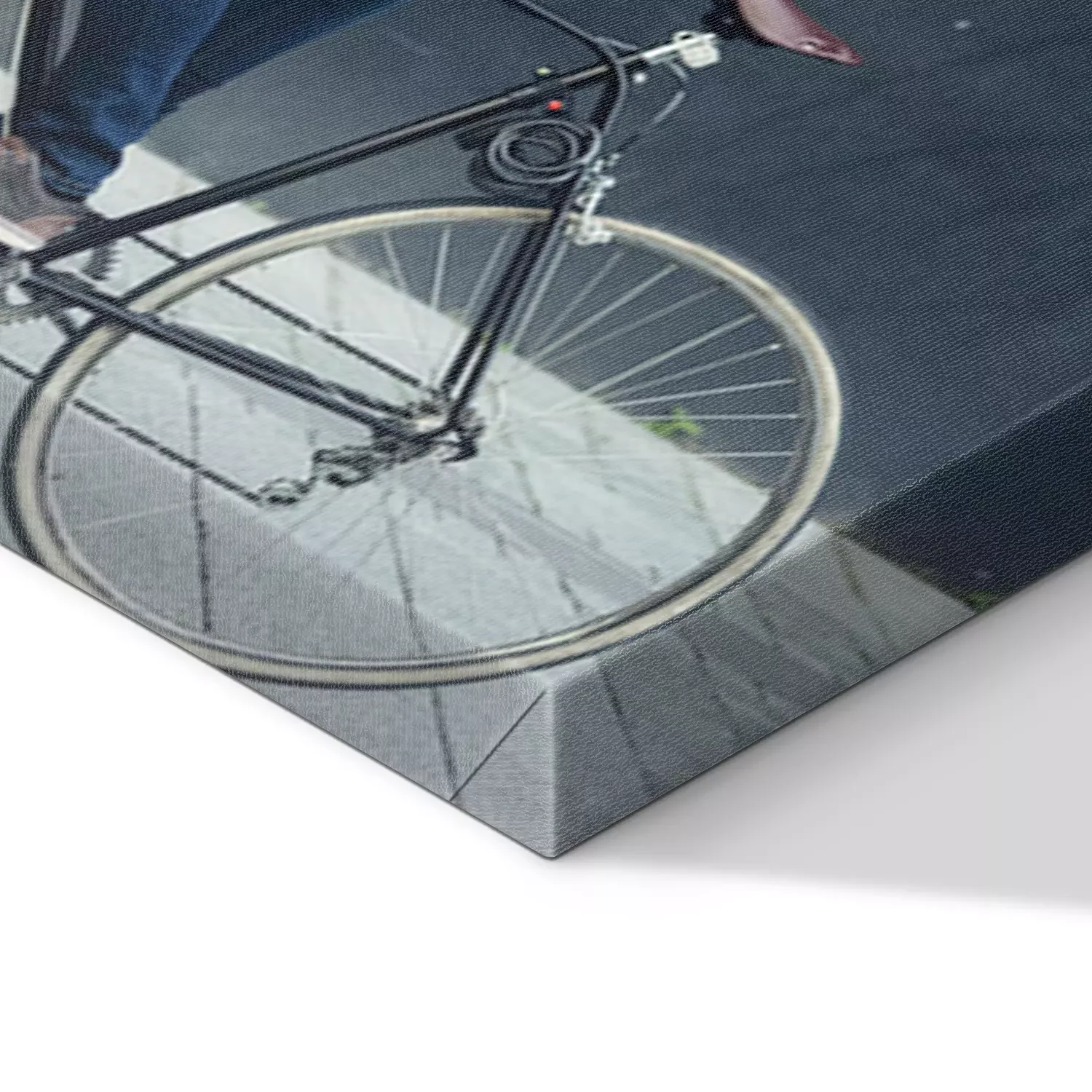 De print wordt aangebracht op hoogwaardig canvas dat op een schildersweefgetouw (spieraam) wordt gespannen. Omdat de print de zijranden bedekt, hoeft het ontwerp niet met een extra kader te worden omlijst. Wij raden ook composities aan die uit meerdere foto's bestaan en zo een coherente compositie vormen.