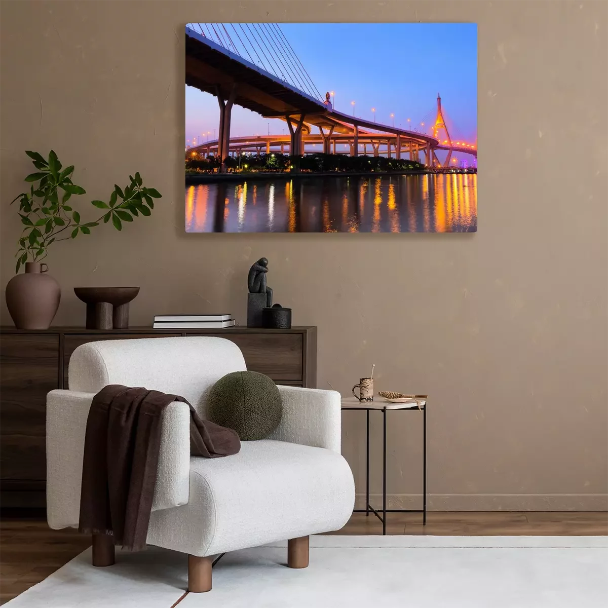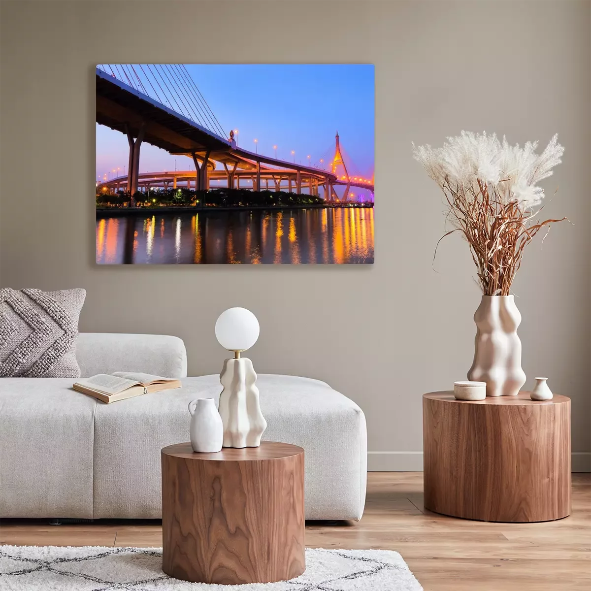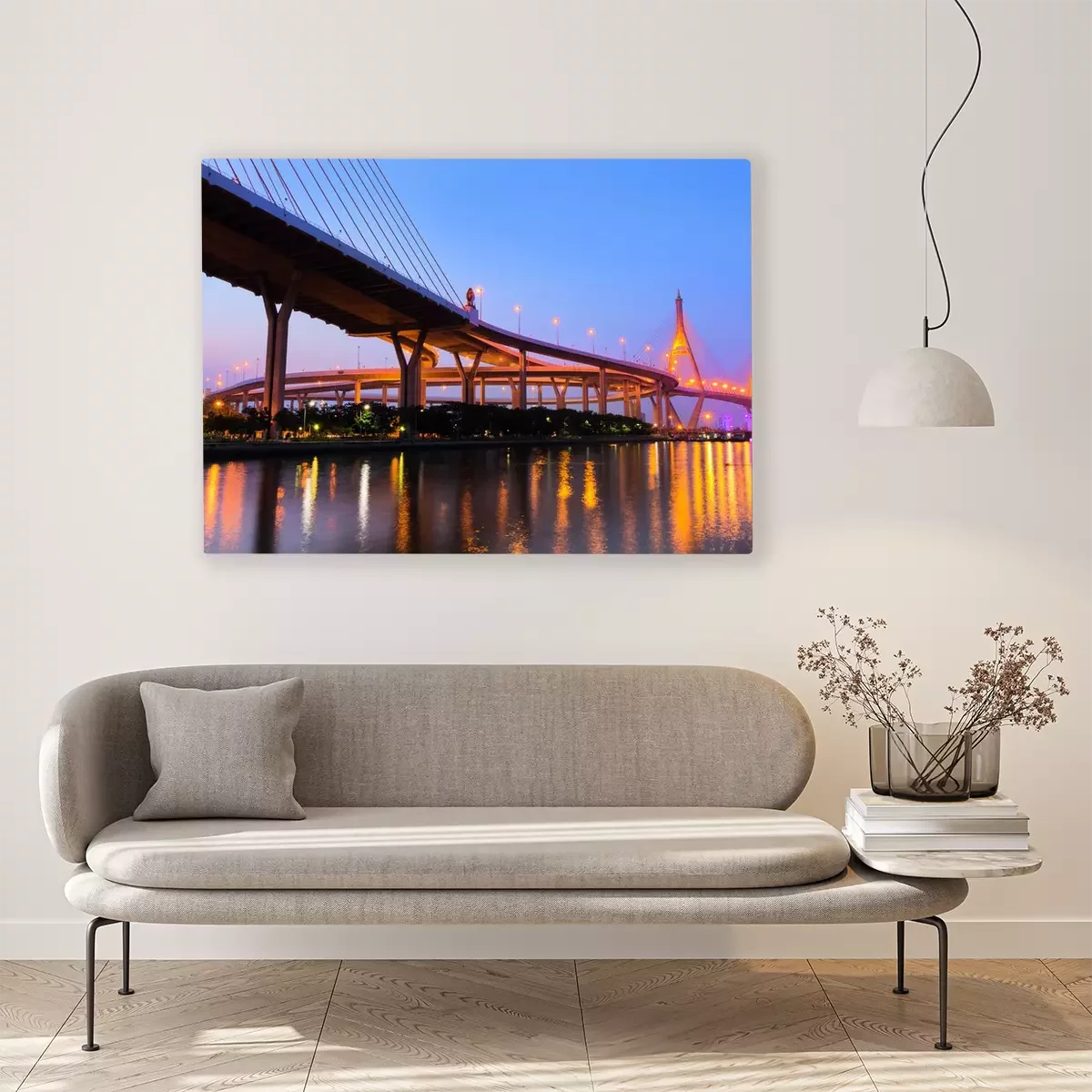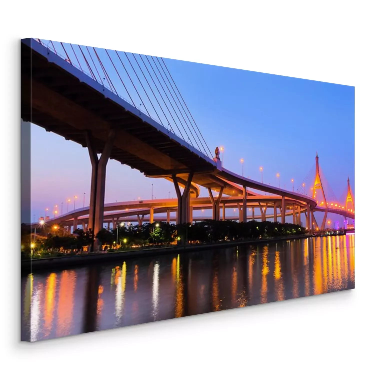 Canvas: Bhumibol Bridge in de zonsondergang, industriële Ring Road Bridge