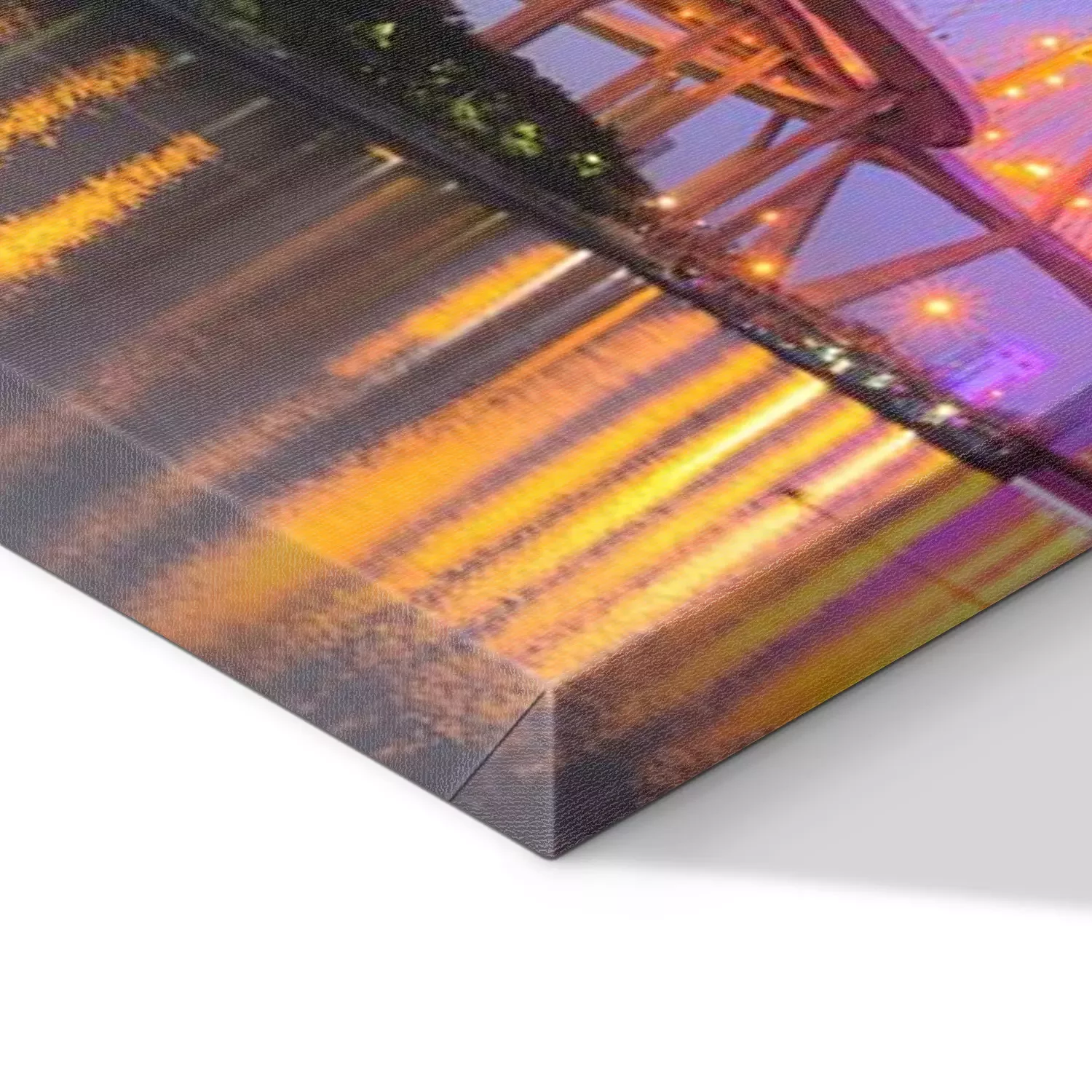 De print wordt aangebracht op hoogwaardig canvas dat op een schildersweefgetouw (spieraam) wordt gespannen. Omdat de print de zijranden bedekt, hoeft het ontwerp niet met een extra kader te worden omlijst. Wij raden ook composities aan die uit meerdere foto's bestaan en zo een coherente compositie vormen.