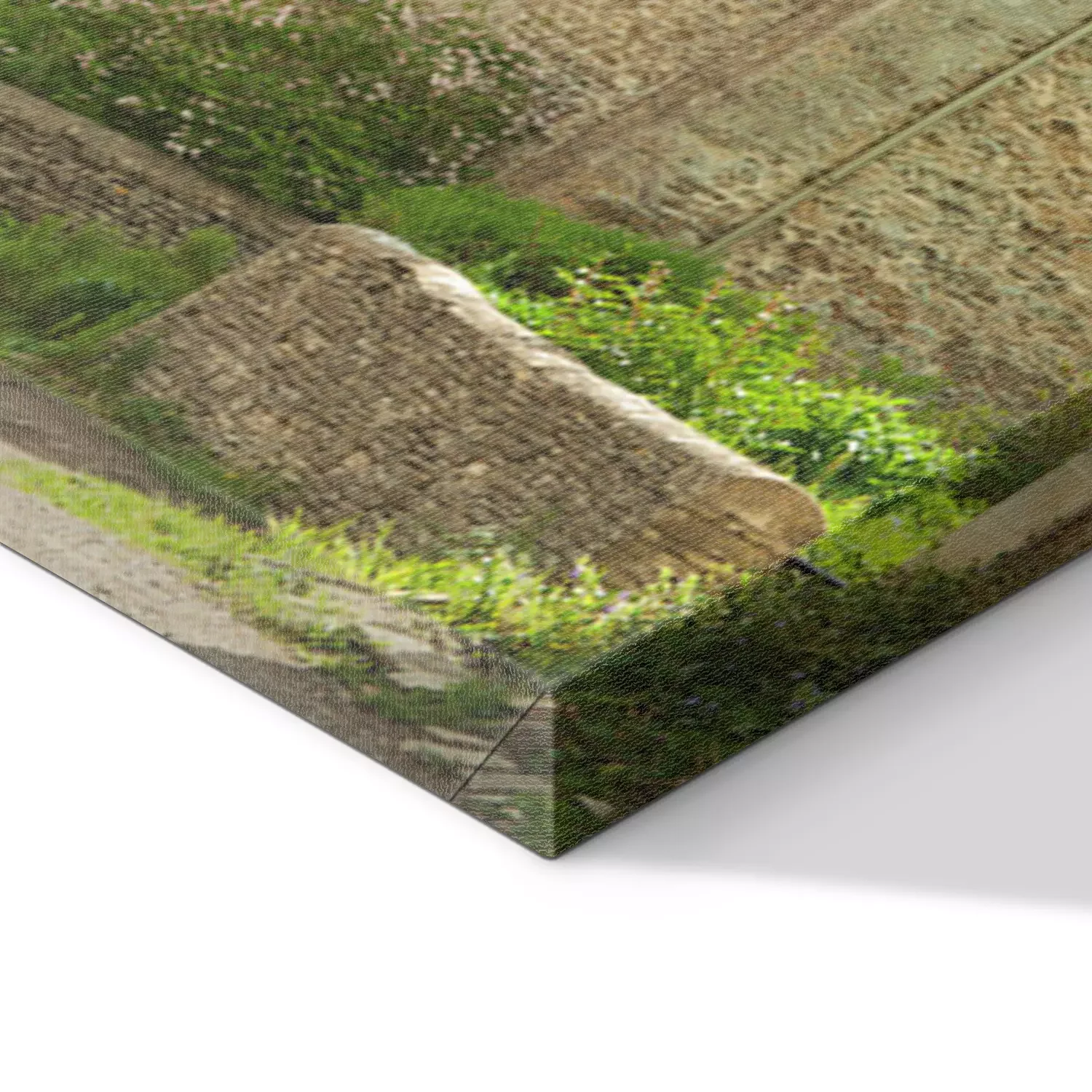 De print wordt aangebracht op hoogwaardig canvas dat op een schildersweefgetouw (spieraam) wordt gespannen. Omdat de print de zijranden bedekt, hoeft het ontwerp niet met een extra kader te worden omlijst. Wij raden ook composities aan die uit meerdere foto's bestaan en zo een coherente compositie vormen.