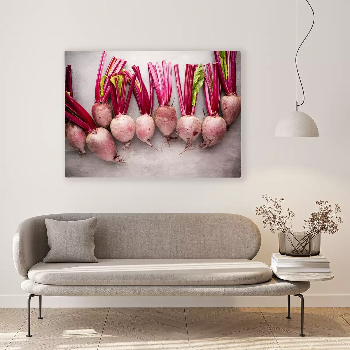 De print wordt aangebracht op hoogwaardig canvas dat op een schildersweefgetouw (spieraam) wordt gespannen. Omdat de print de zijranden bedekt, hoeft het ontwerp niet met een extra kader te worden omlijst. Wij raden ook composities aan die uit meerdere foto's bestaan en zo een coherente compositie vormen.