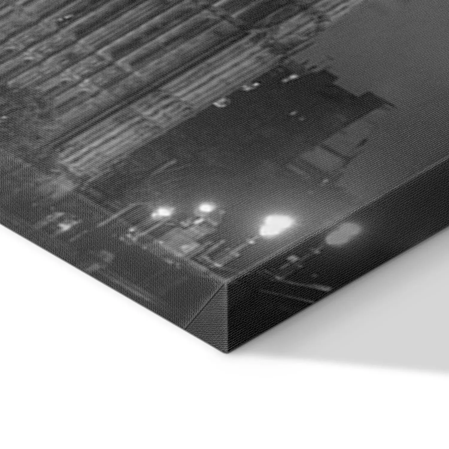 De print wordt aangebracht op hoogwaardig canvas dat op een schildersweefgetouw (spieraam) wordt gespannen. Omdat de print de zijranden bedekt, hoeft het ontwerp niet met een extra kader te worden omlijst. Wij raden ook composities aan die uit meerdere foto's bestaan en zo een coherente compositie vormen.