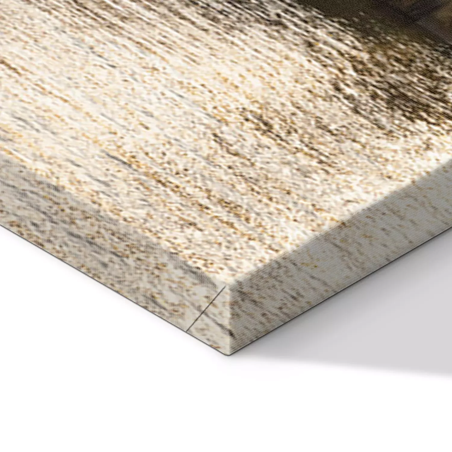 De print wordt aangebracht op hoogwaardig canvas dat op een schildersweefgetouw (spieraam) wordt gespannen. Omdat de print de zijranden bedekt, hoeft het ontwerp niet met een extra kader te worden omlijst. Wij raden ook composities aan die uit meerdere foto's bestaan en zo een coherente compositie vormen.