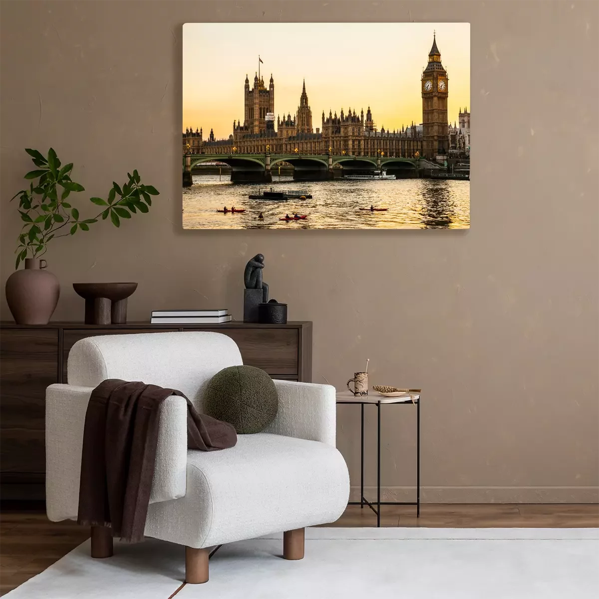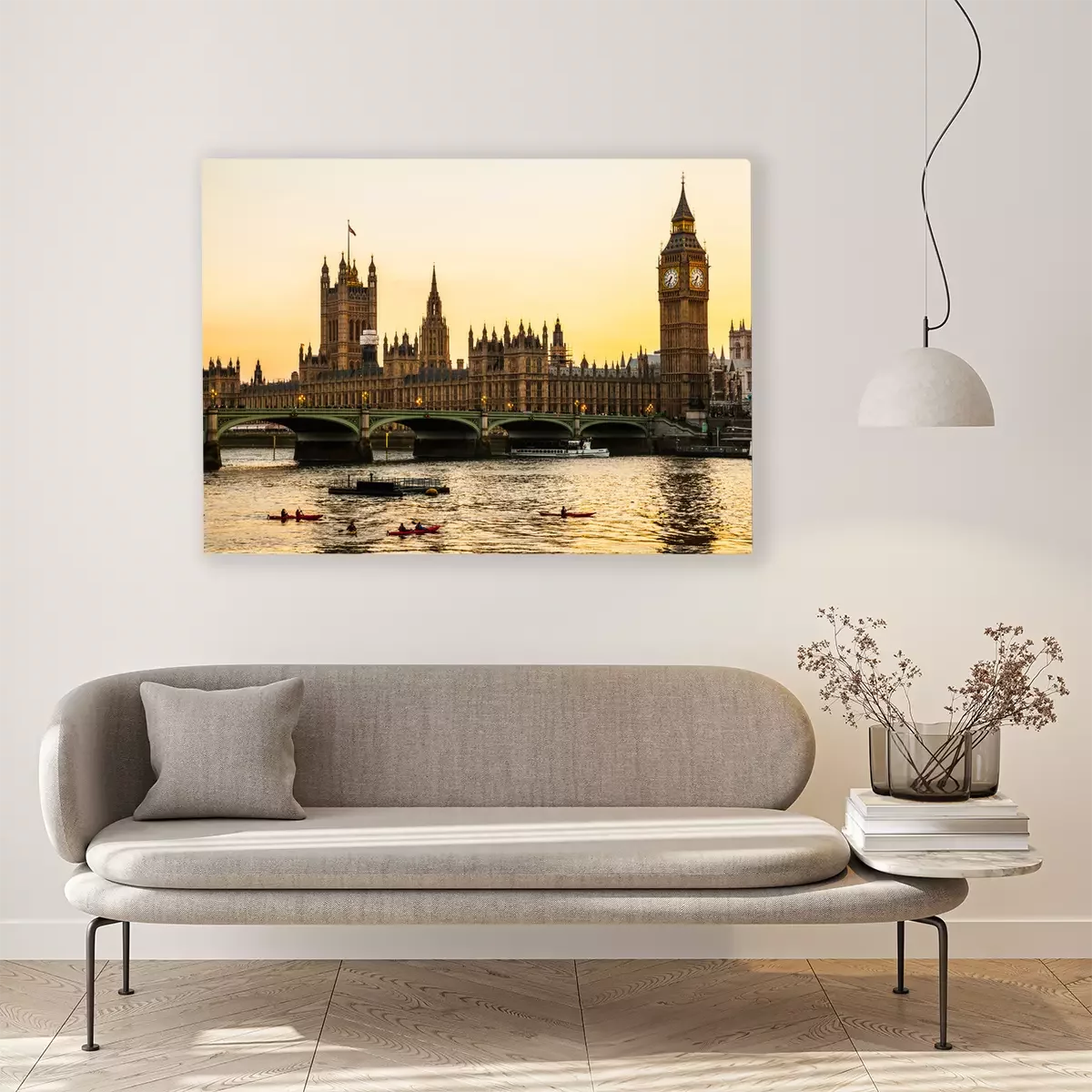 Canvas Big Ben Clock Tower en het huis van het Parlement in City of Westminster,
