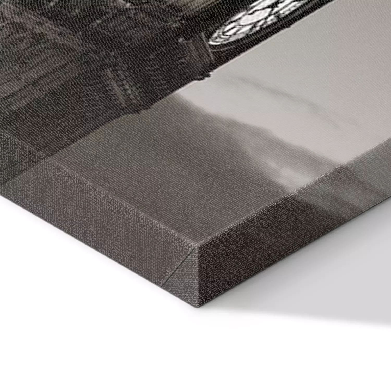 De print wordt aangebracht op hoogwaardig canvas dat op een schildersweefgetouw (spieraam) wordt gespannen. Omdat de print de zijranden bedekt, hoeft het ontwerp niet met een extra kader te worden omlijst. Wij raden ook composities aan die uit meerdere foto's bestaan en zo een coherente compositie vormen.