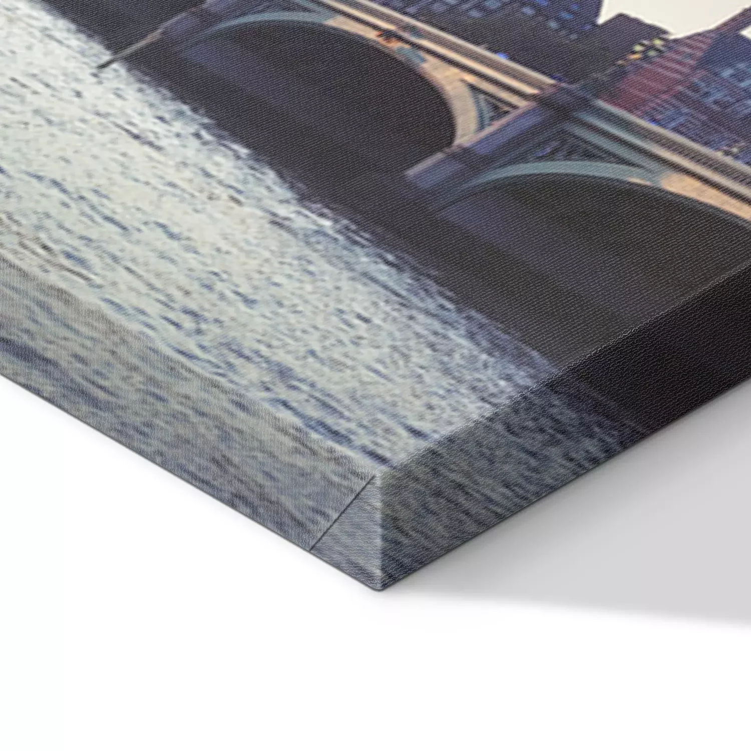 De print wordt aangebracht op hoogwaardig canvas dat op een schildersweefgetouw (spieraam) wordt gespannen. Omdat de print de zijranden bedekt, hoeft het ontwerp niet met een extra kader te worden omlijst. Wij raden ook composities aan die uit meerdere foto's bestaan en zo een coherente compositie vormen.