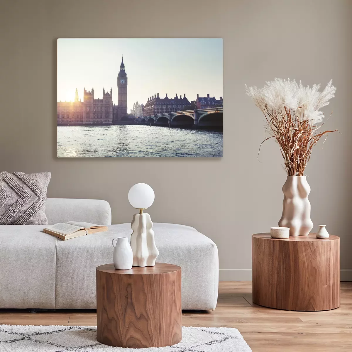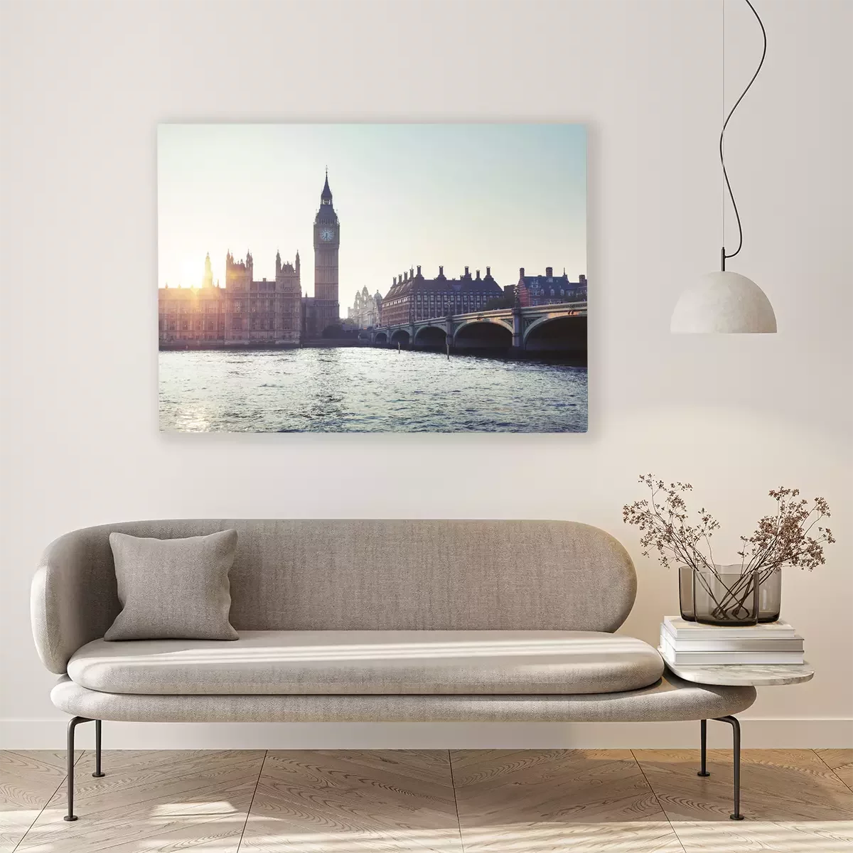 Canvas: Big Ben en Westminster bij zonsondergang, Londen, UK