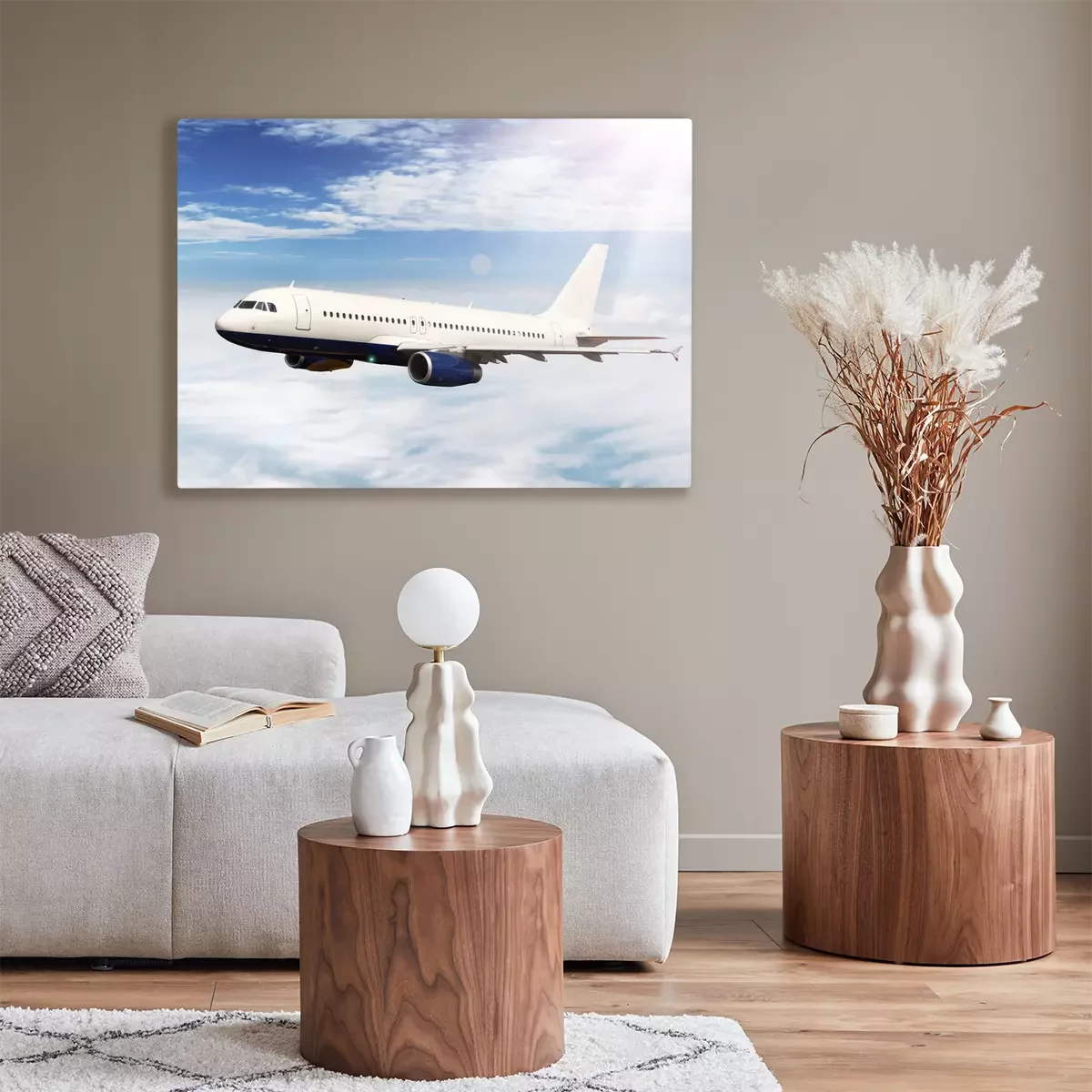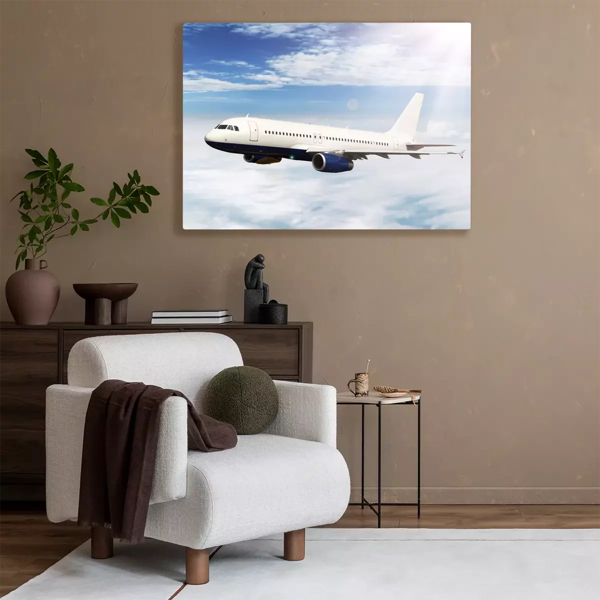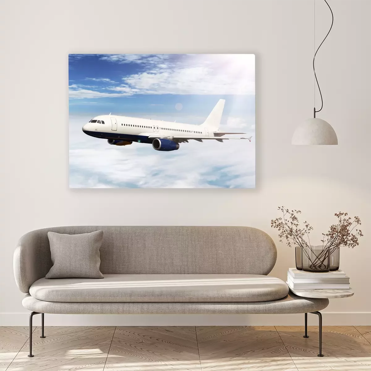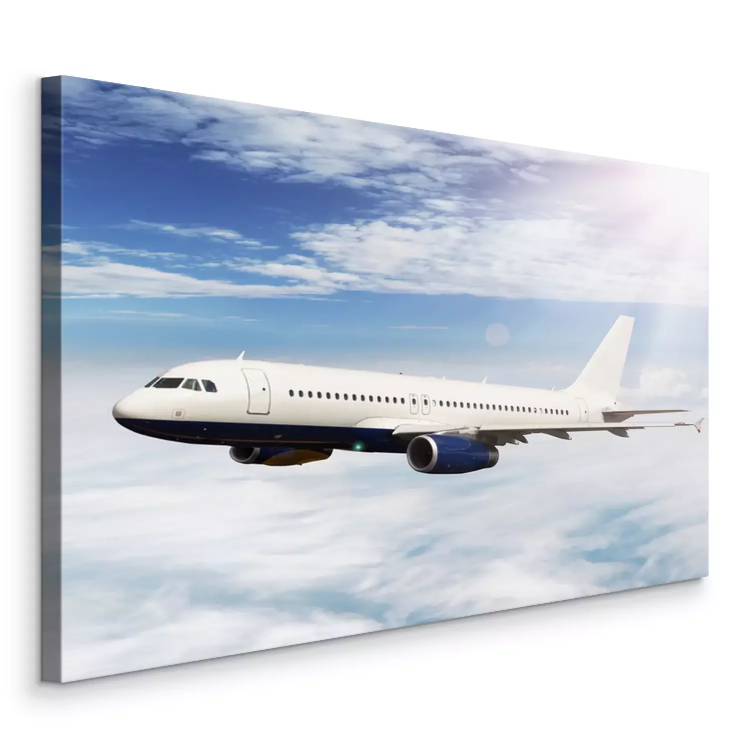 Canvas: Big jet vliegtuig vliegt boven wolken