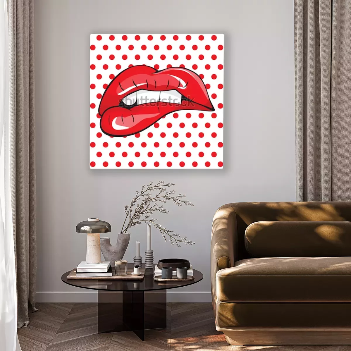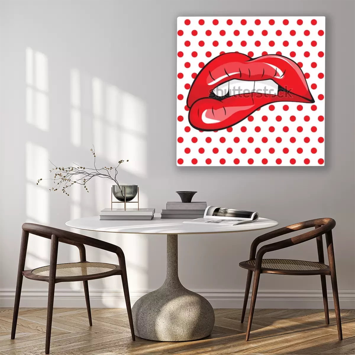 Canvas: Bijtend haar rode lippen waren popart