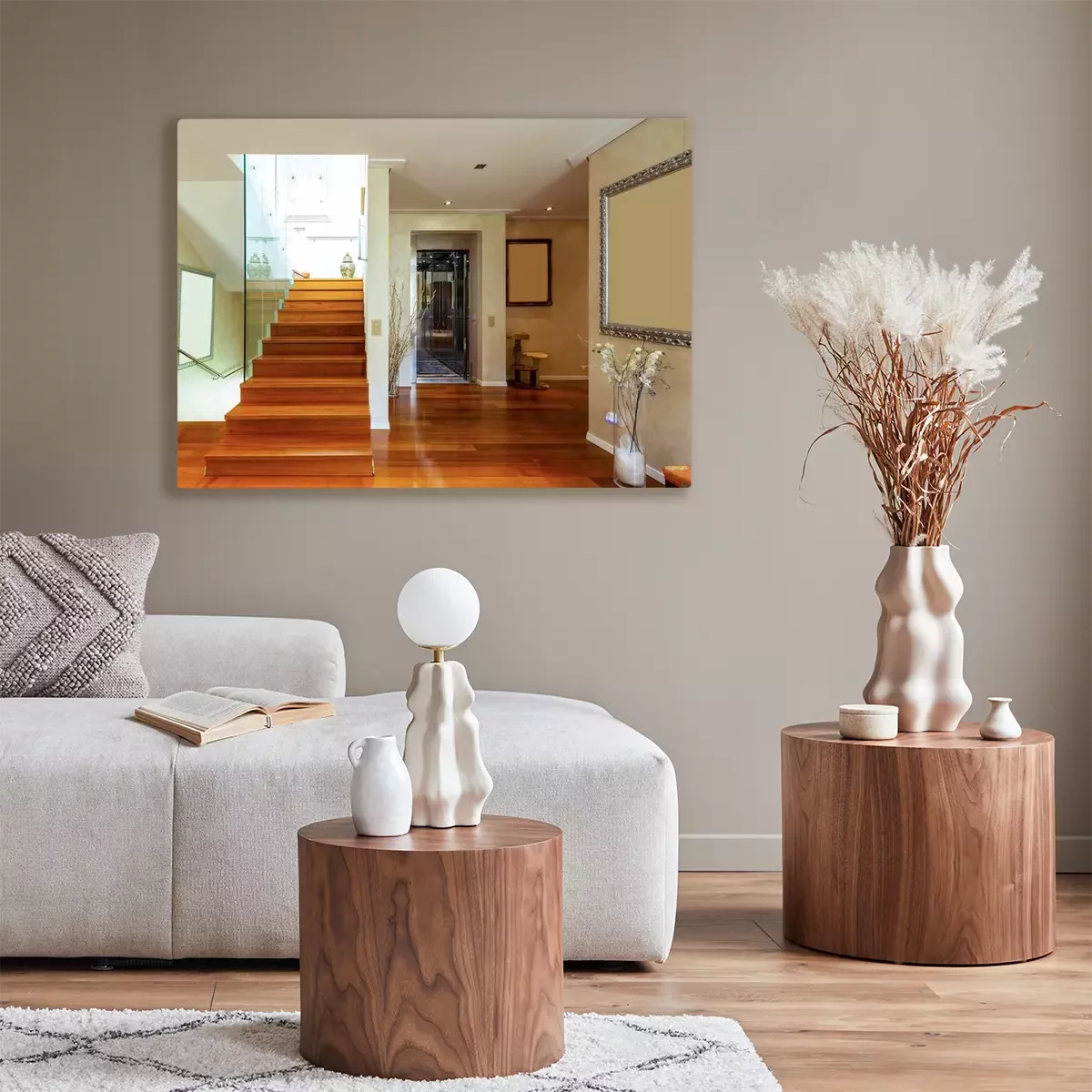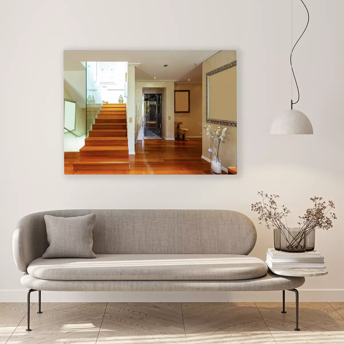 De print wordt aangebracht op hoogwaardig canvas dat op een schildersweefgetouw (spieraam) wordt gespannen. Omdat de print de zijranden bedekt, hoeft het ontwerp niet met een extra kader te worden omlijst. Wij raden ook composities aan die uit meerdere foto's bestaan en zo een coherente compositie vormen.