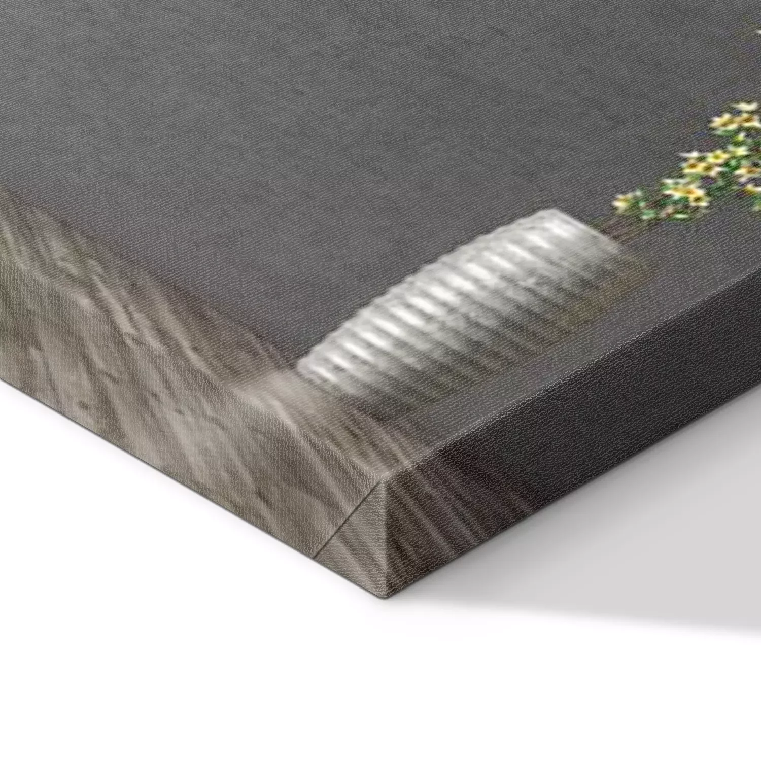 De print wordt aangebracht op hoogwaardig canvas dat op een schildersweefgetouw (spieraam) wordt gespannen. Omdat de print de zijranden bedekt, hoeft het ontwerp niet met een extra kader te worden omlijst. Wij raden ook composities aan die uit meerdere foto's bestaan en zo een coherente compositie vormen.