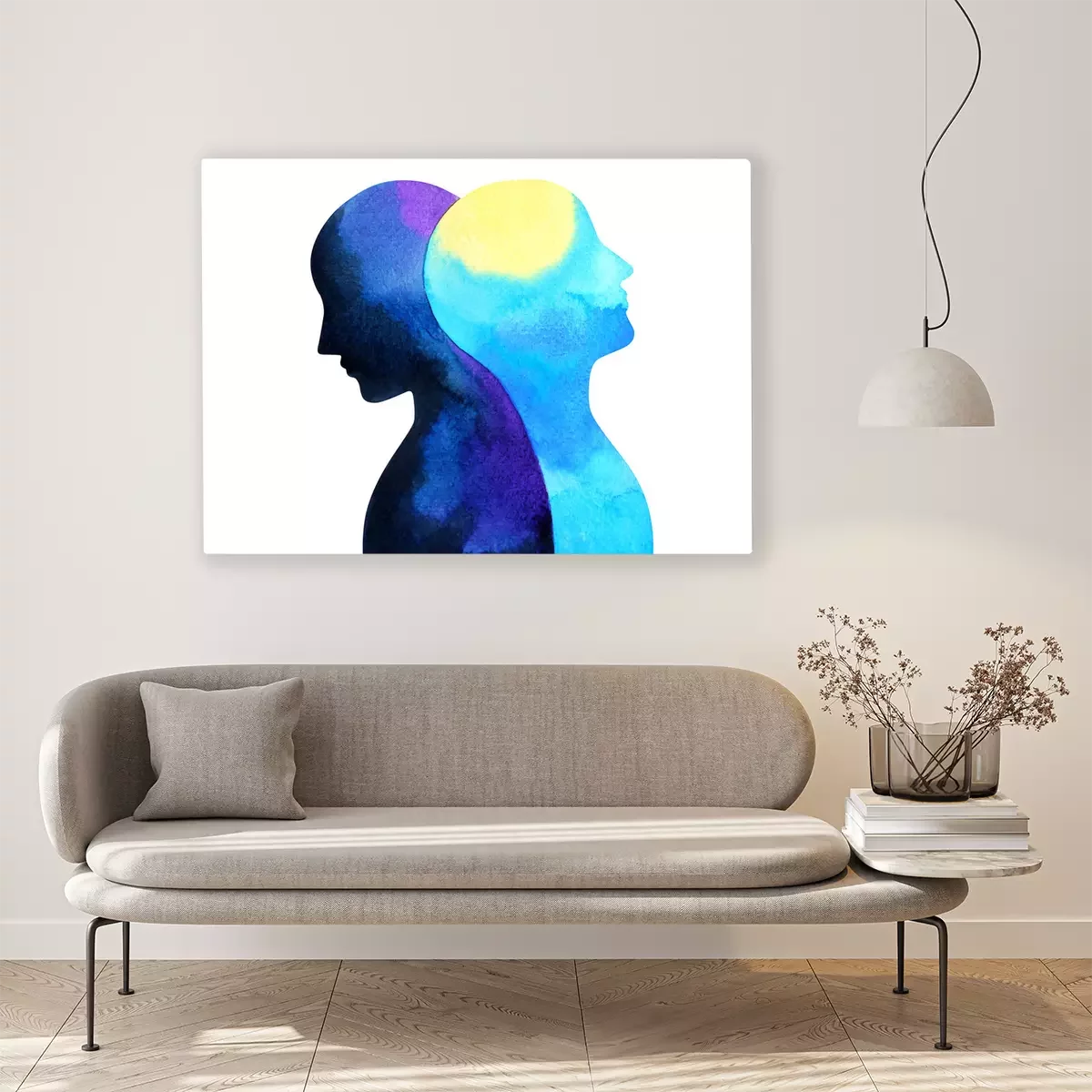Canvas: bipolaire wanorde geest geestelijke gezondheid verbinding aquarel schilderij illustratie hand tekening ontwerpsymbool
