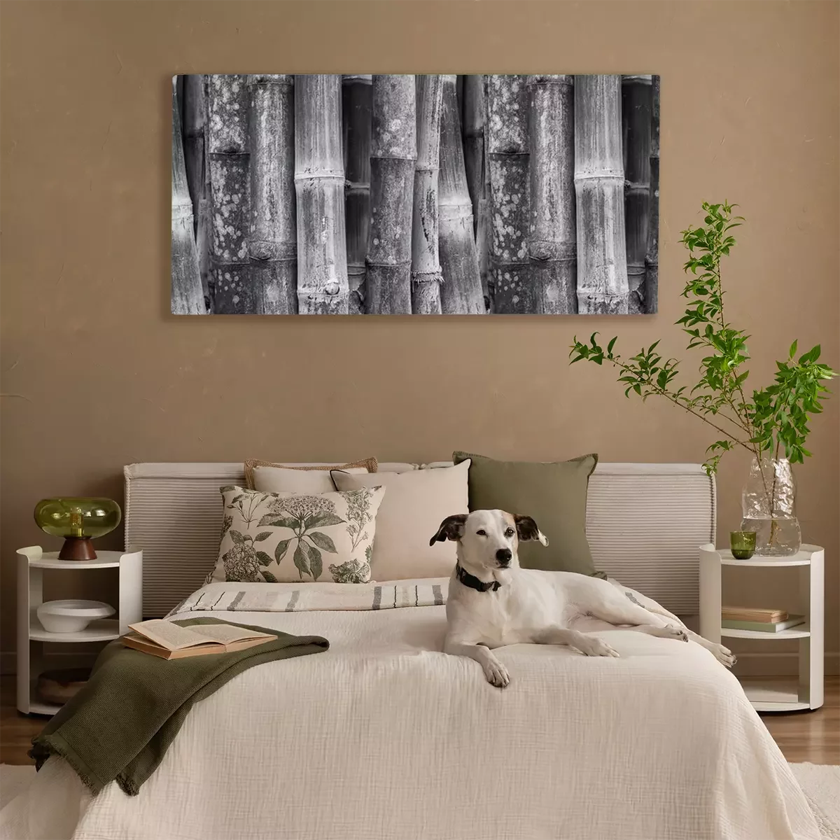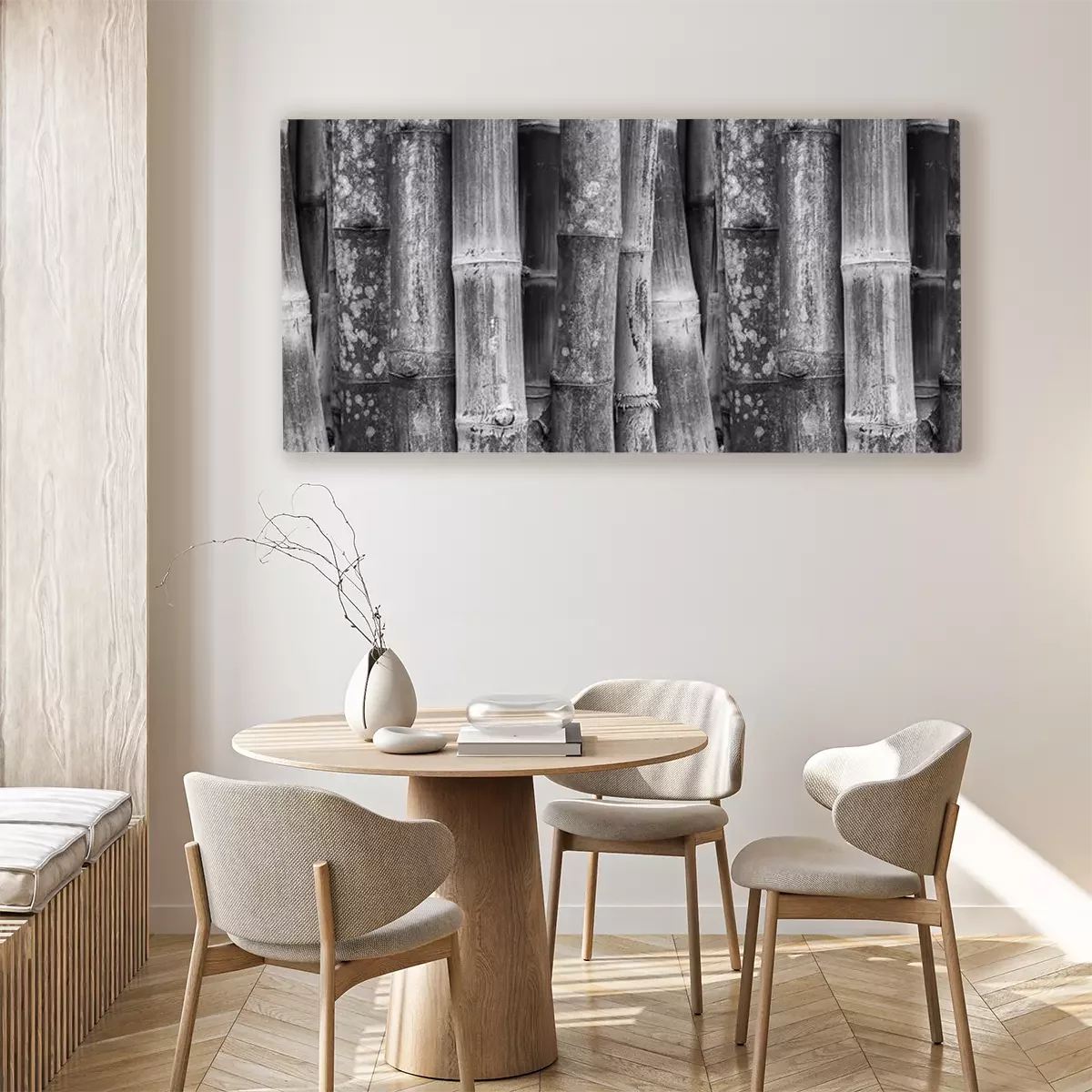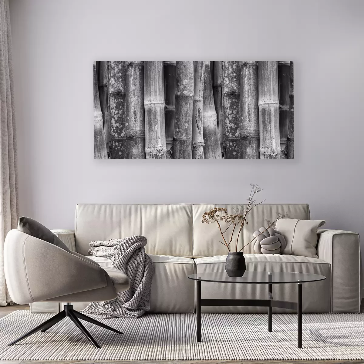 Canvas Black and White bamboe muur achtergrond
