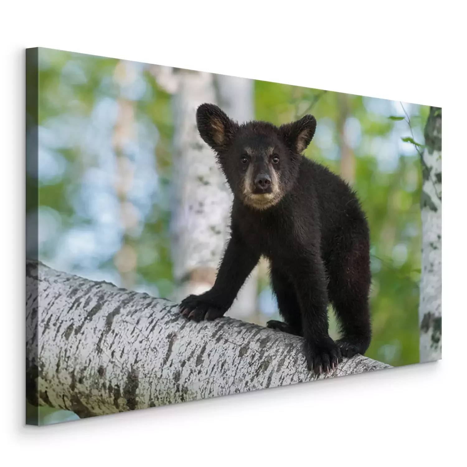Canvas Black Bear Cub (Ursus americanus) kijkt uit van Branch