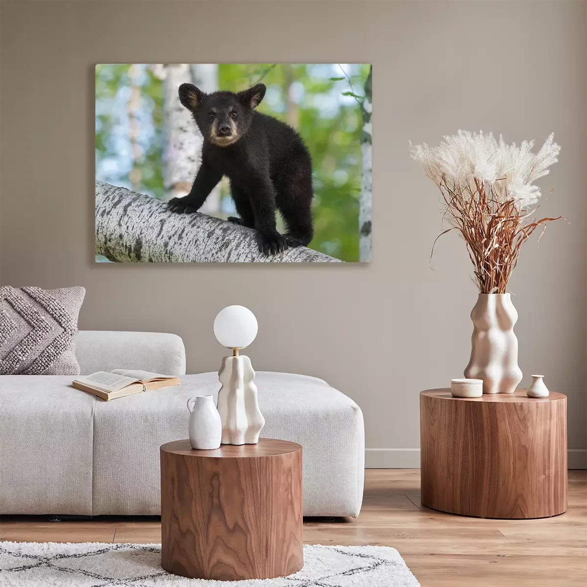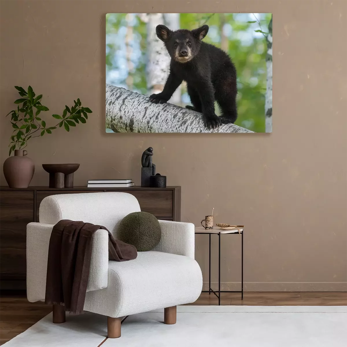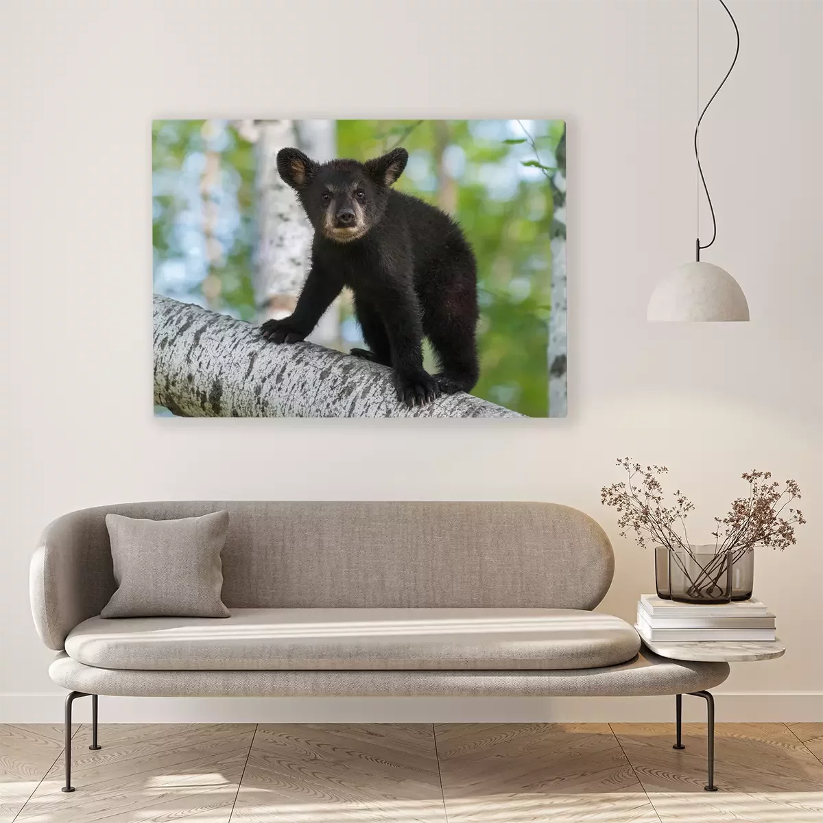 Canvas: Black Bear Cub (Ursus americanus) kijkt uit van Branch