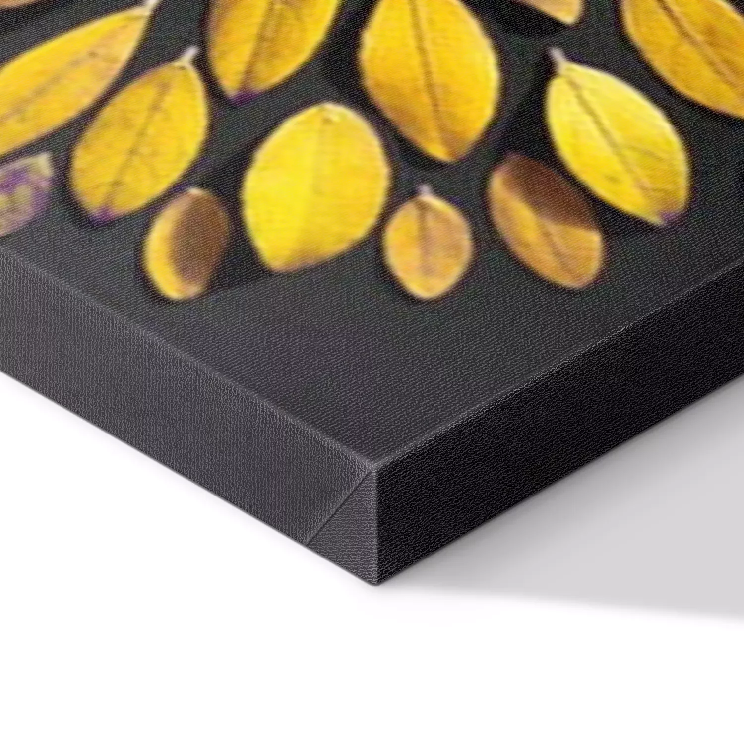 De print wordt aangebracht op hoogwaardig canvas dat op een schildersweefgetouw (spieraam) wordt gespannen. Omdat de print de zijranden bedekt, hoeft het ontwerp niet met een extra kader te worden omlijst. Wij raden ook composities aan die uit meerdere foto's bestaan en zo een coherente compositie vormen.
