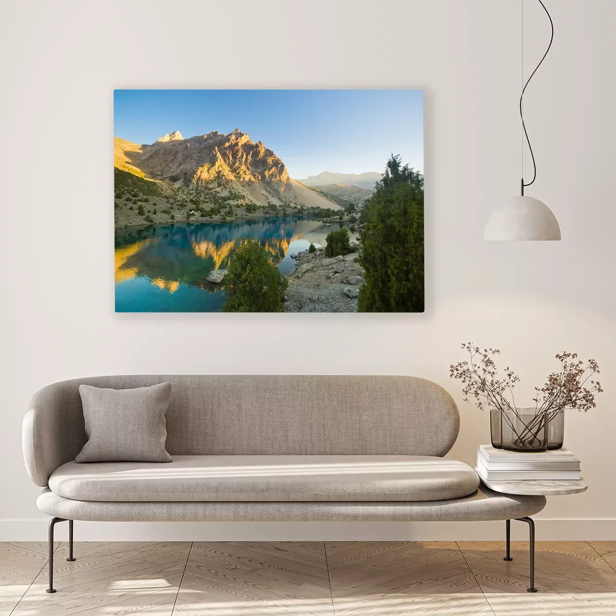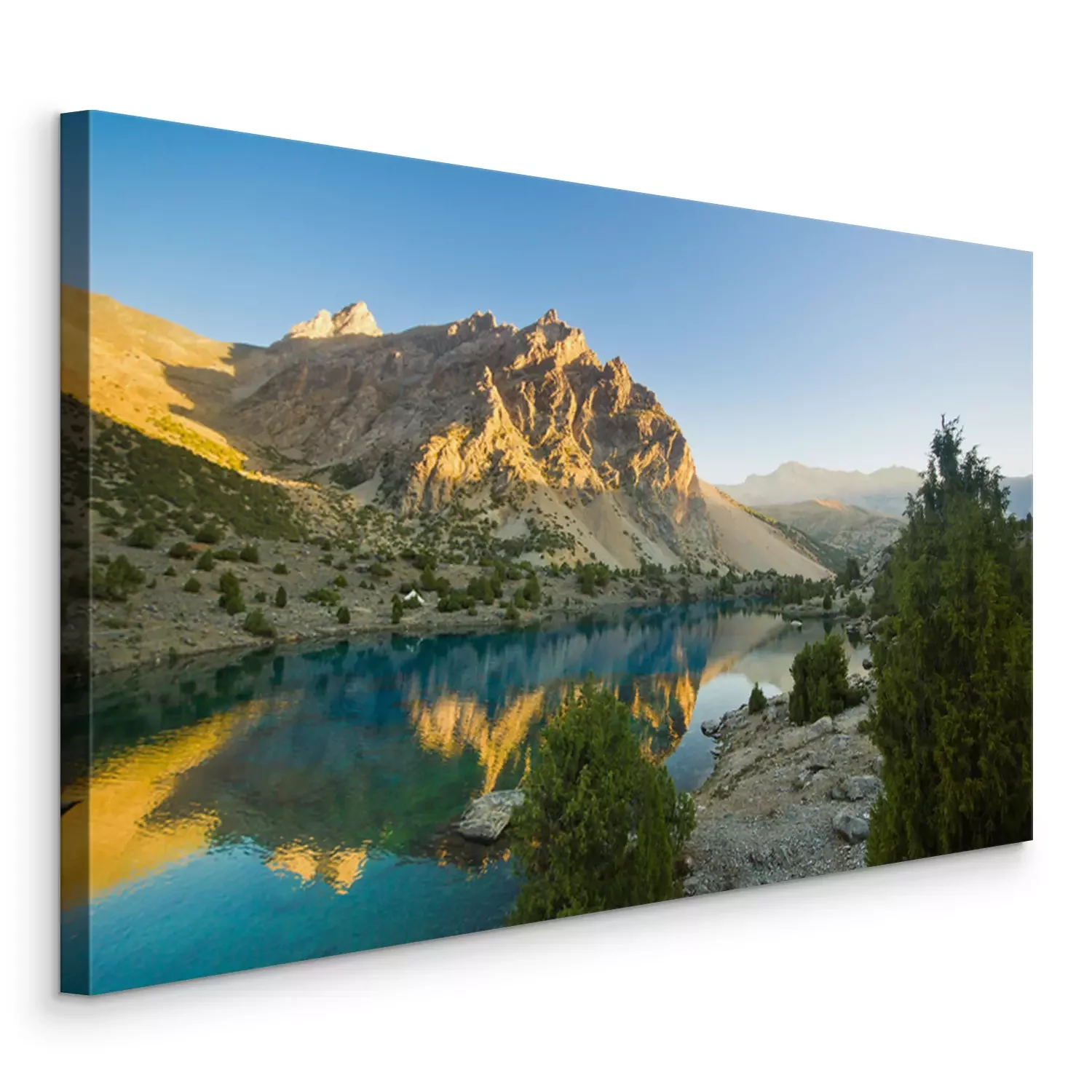 Canvas: blauw bergmeer bij zonsopgang
