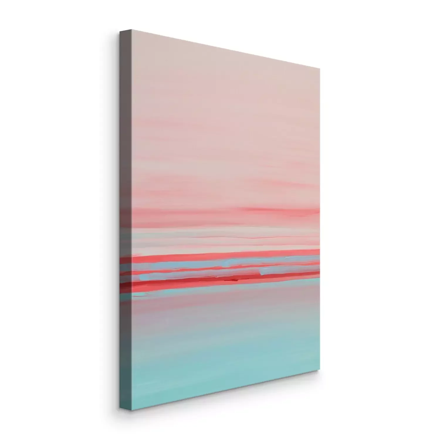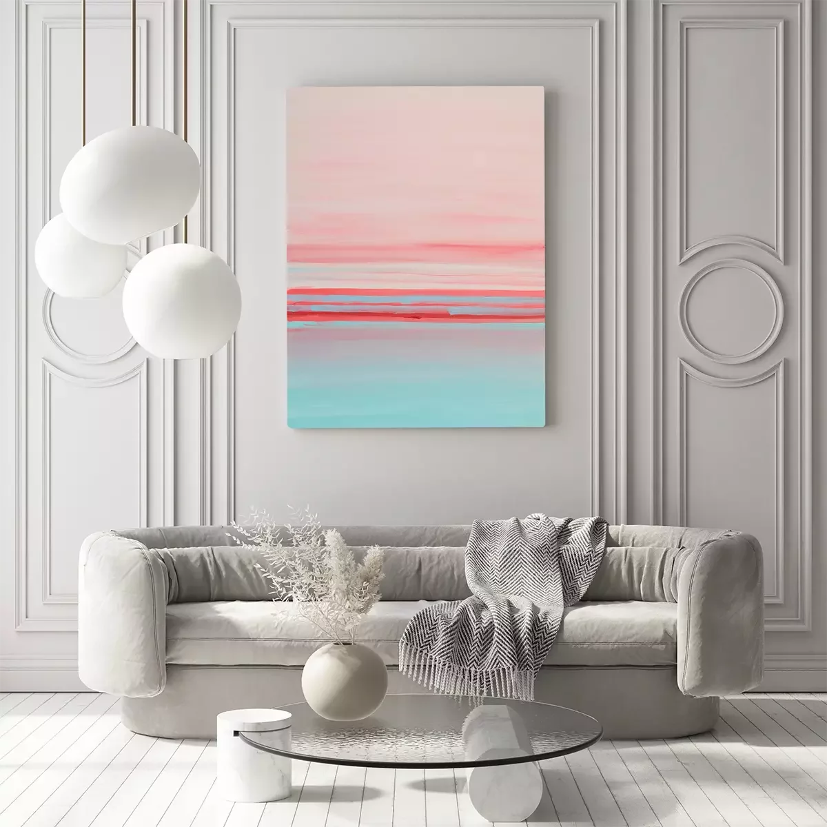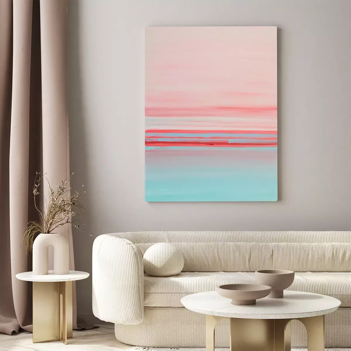 Canvas: Blauw roze abstact interieur olieverfschilderij