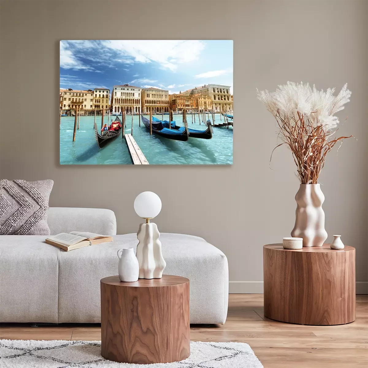 De print wordt aangebracht op hoogwaardig canvas dat op een schildersweefgetouw (spieraam) wordt gespannen. Omdat de print de zijranden bedekt, hoeft het ontwerp niet met een extra kader te worden omlijst. Wij raden ook composities aan die uit meerdere foto's bestaan en zo een coherente compositie vormen.