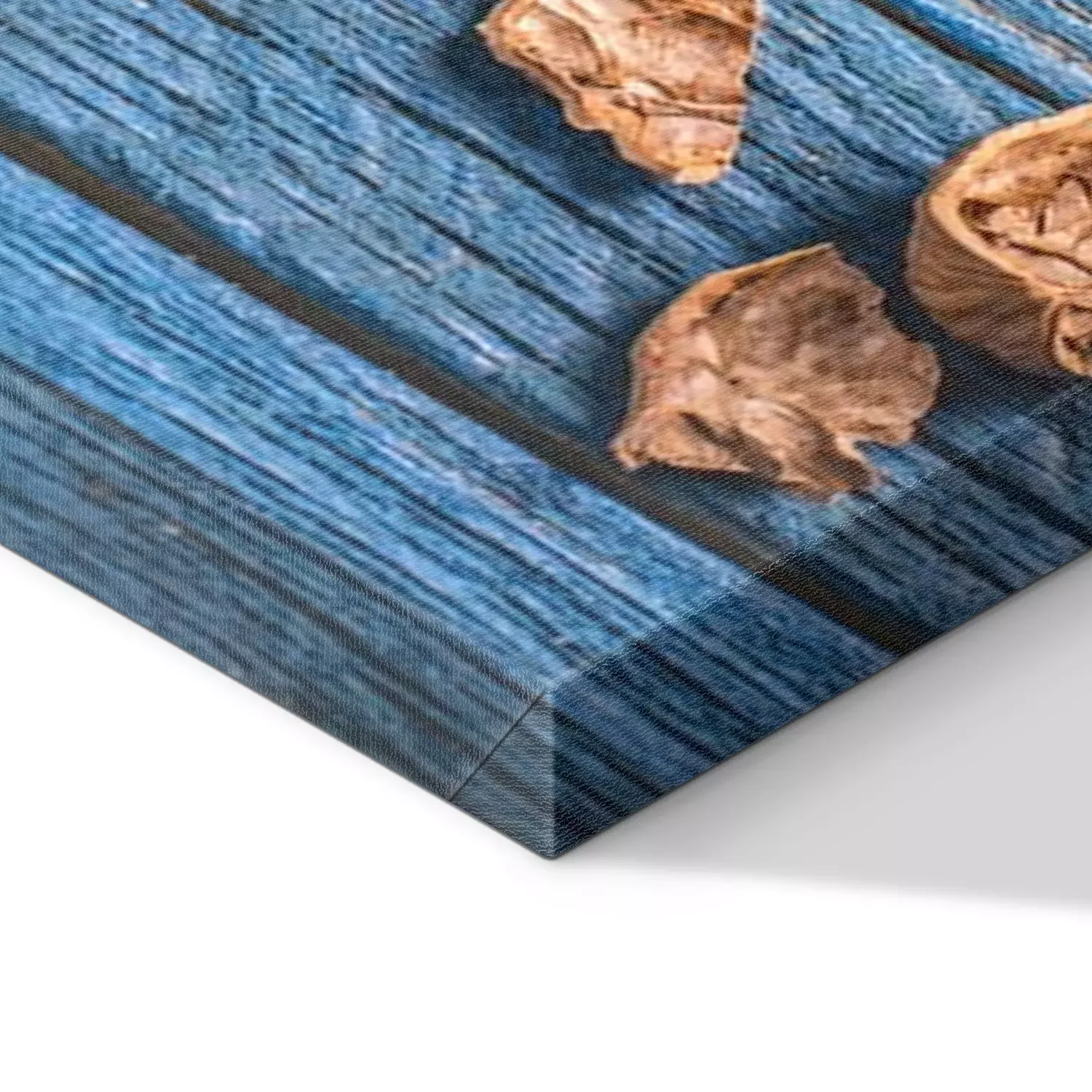 De print wordt aangebracht op hoogwaardig canvas dat op een schildersweefgetouw (spieraam) wordt gespannen. Omdat de print de zijranden bedekt, hoeft het ontwerp niet met een extra kader te worden omlijst. Wij raden ook composities aan die uit meerdere foto's bestaan en zo een coherente compositie vormen.