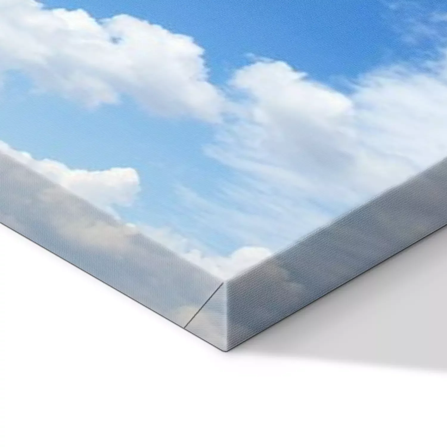 De print wordt aangebracht op hoogwaardig canvas dat op een schildersweefgetouw (spieraam) wordt gespannen. Omdat de print de zijranden bedekt, hoeft het ontwerp niet met een extra kader te worden omlijst. Wij raden ook composities aan die uit meerdere foto's bestaan en zo een coherente compositie vormen.