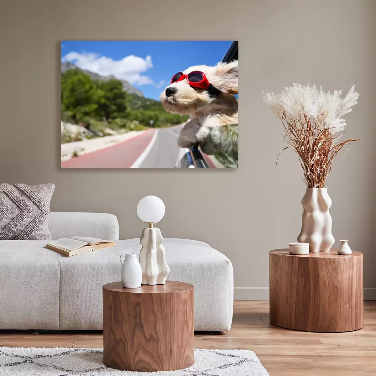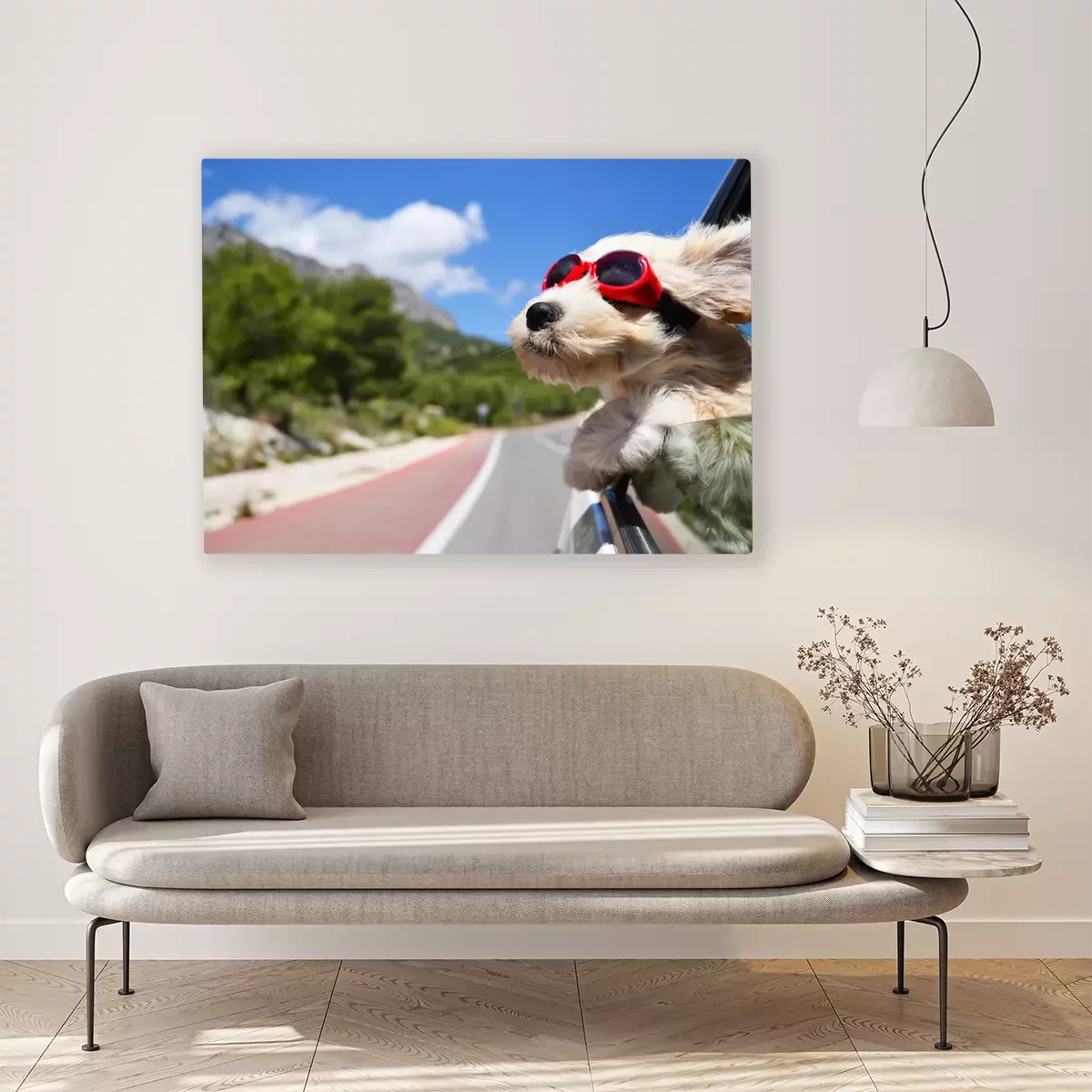 De print wordt aangebracht op hoogwaardig canvas dat op een schildersweefgetouw (spieraam) wordt gespannen. Omdat de print de zijranden bedekt, hoeft het ontwerp niet met een extra kader te worden omlijst. Wij raden ook composities aan die uit meerdere foto's bestaan en zo een coherente compositie vormen.