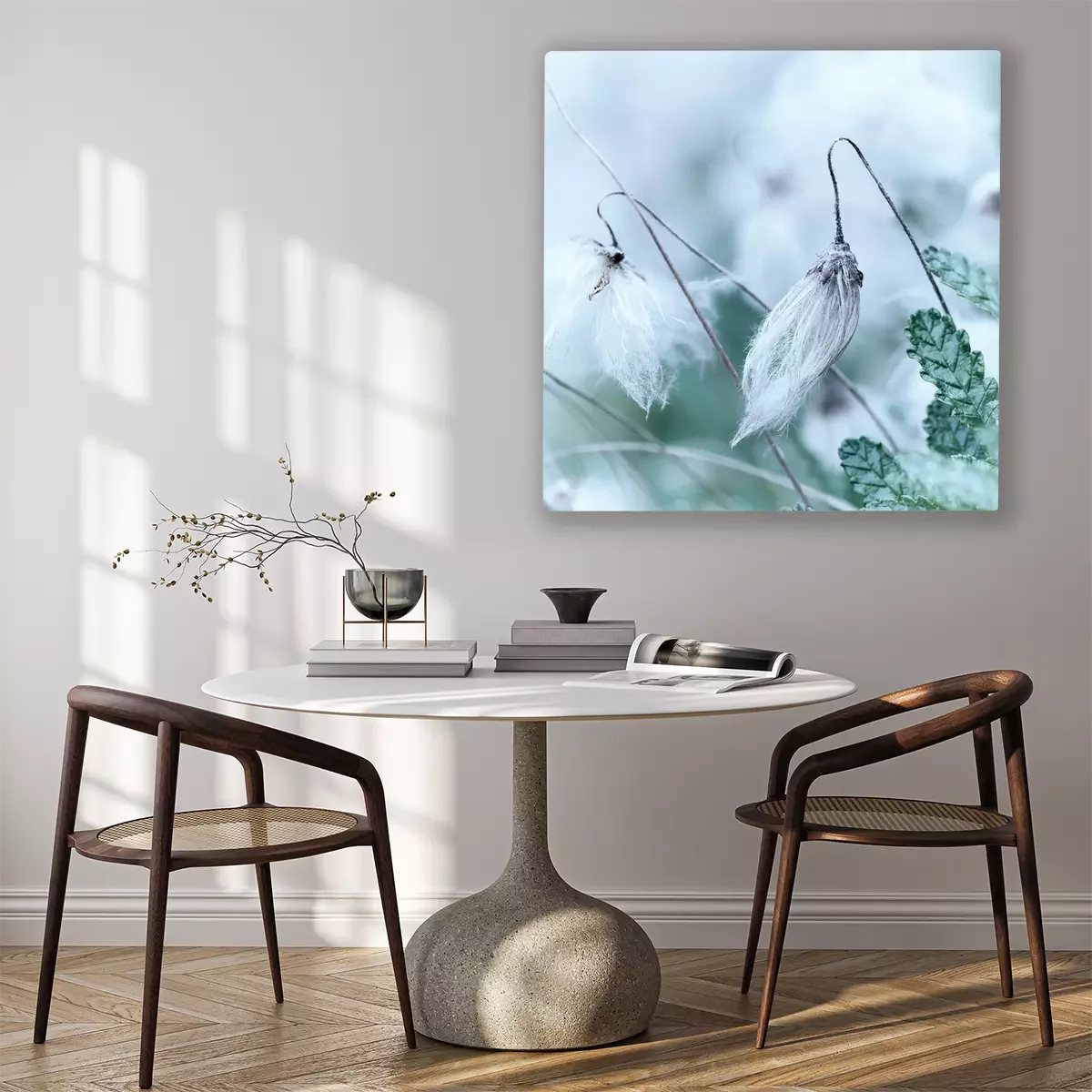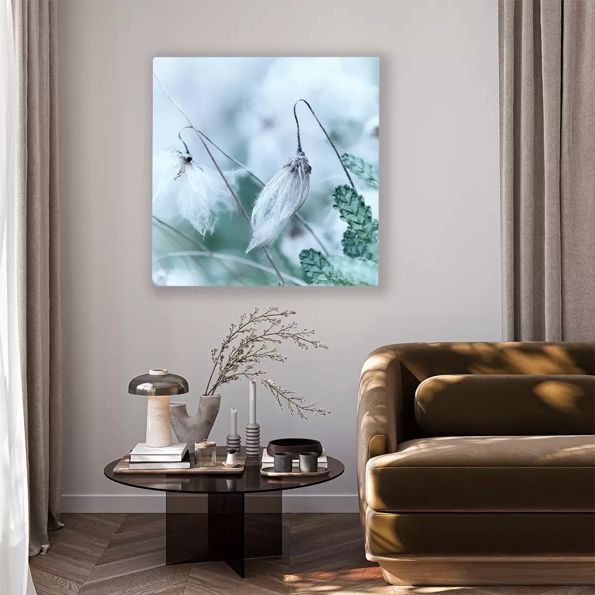 De print wordt aangebracht op hoogwaardig canvas dat op een schildersweefgetouw (spieraam) wordt gespannen. Omdat de print de zijranden bedekt, hoeft het ontwerp niet met een extra kader te worden omlijst. Wij raden ook composities aan die uit meerdere foto's bestaan en zo een coherente compositie vormen.