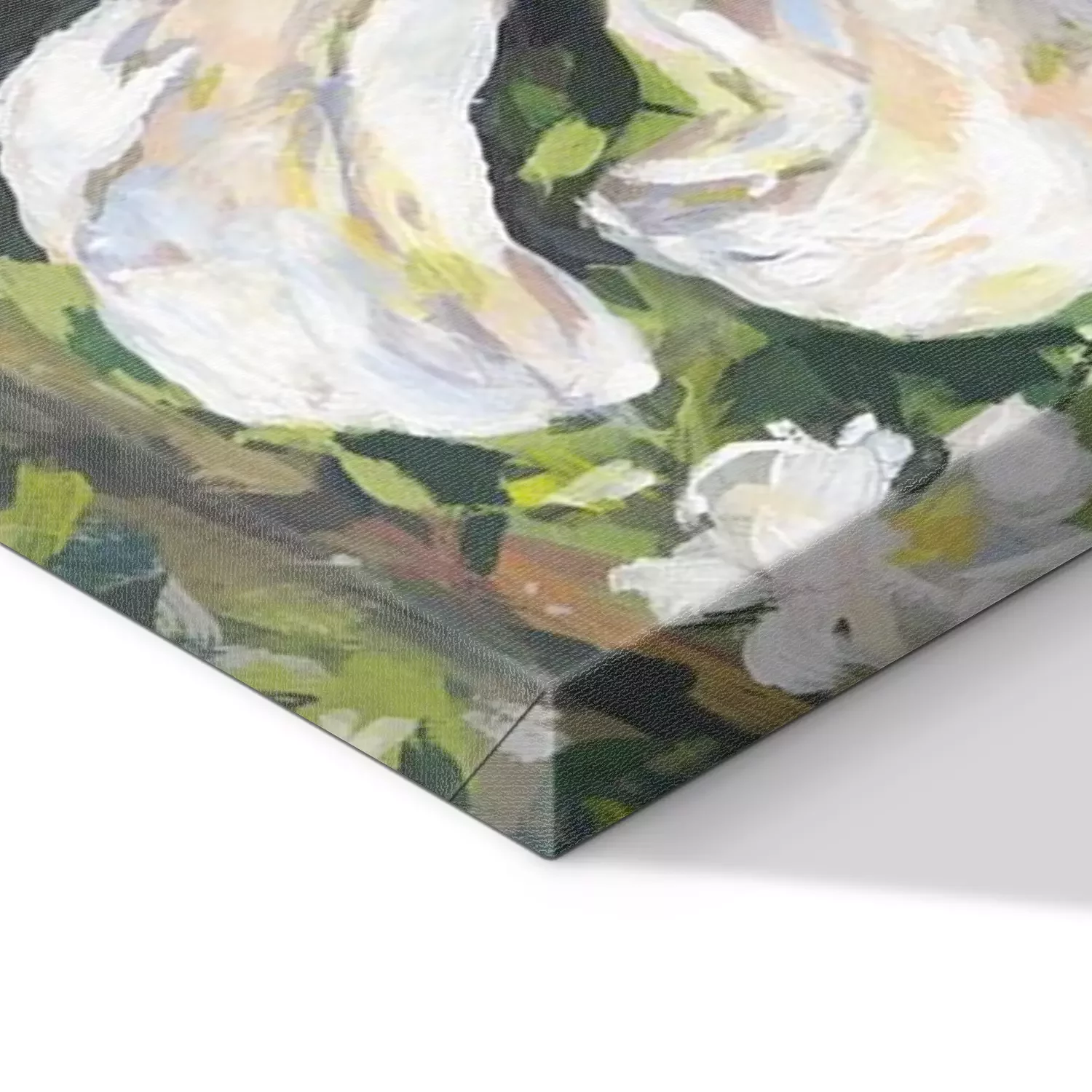 De print wordt aangebracht op hoogwaardig canvas dat op een schildersweefgetouw (spieraam) wordt gespannen. Omdat de print de zijranden bedekt, hoeft het ontwerp niet met een extra kader te worden omlijst. Wij raden ook composities aan die uit meerdere foto's bestaan en zo een coherente compositie vormen.