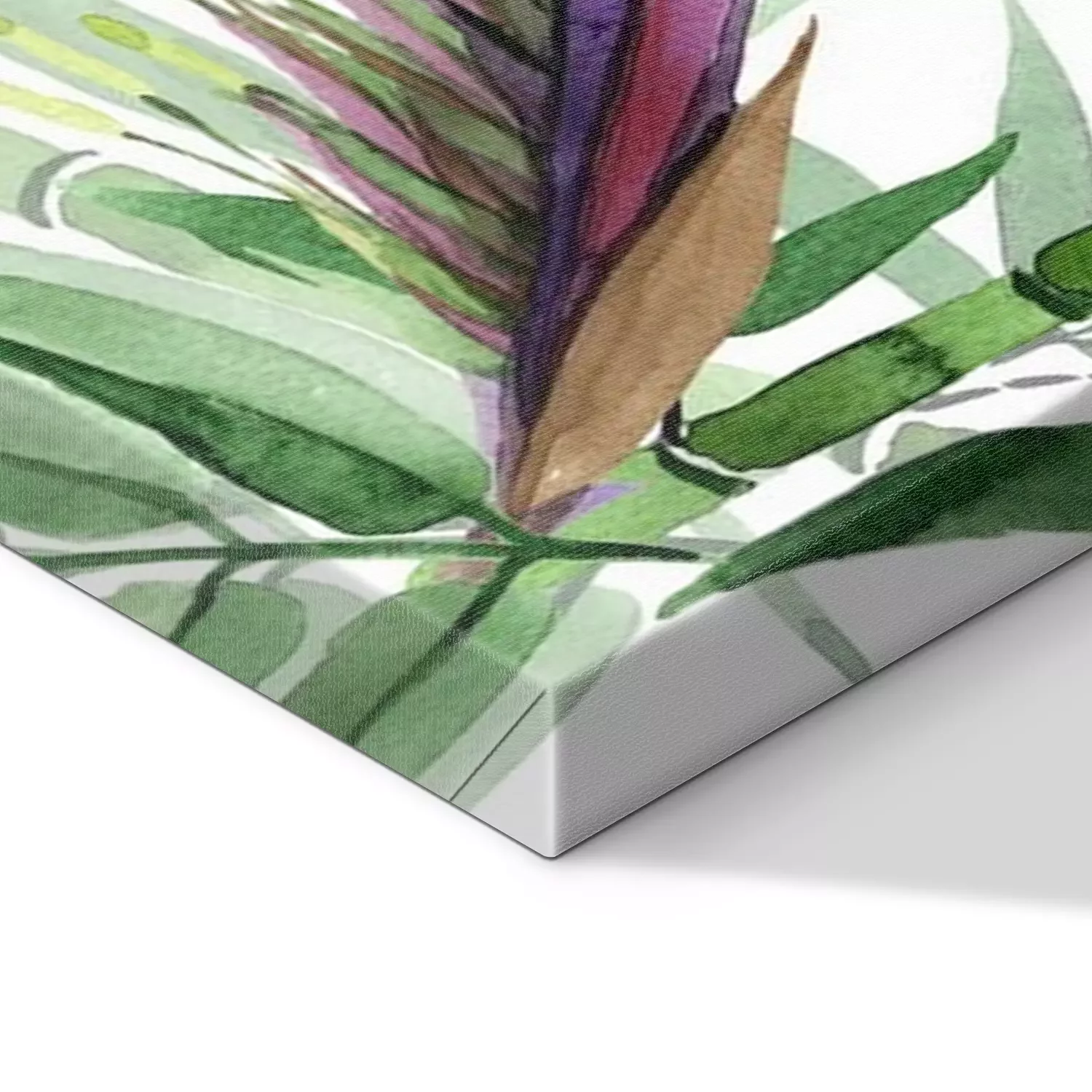 De print wordt aangebracht op hoogwaardig canvas dat op een schildersweefgetouw (spieraam) wordt gespannen. Omdat de print de zijranden bedekt, hoeft het ontwerp niet met een extra kader te worden omlijst. Wij raden ook composities aan die uit meerdere foto's bestaan en zo een coherente compositie vormen.