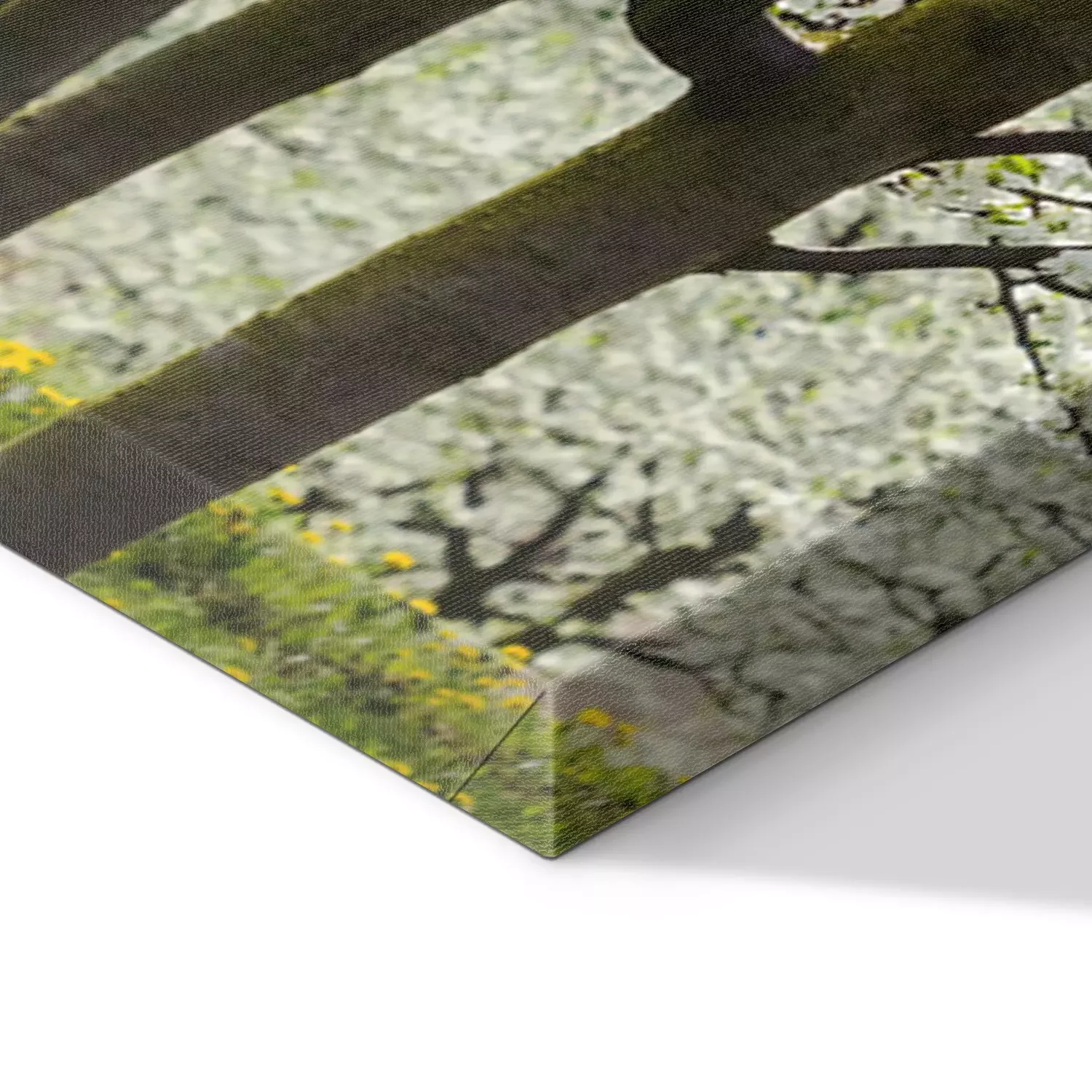 De print wordt aangebracht op hoogwaardig canvas dat op een schildersweefgetouw (spieraam) wordt gespannen. Omdat de print de zijranden bedekt, hoeft het ontwerp niet met een extra kader te worden omlijst. Wij raden ook composities aan die uit meerdere foto's bestaan en zo een coherente compositie vormen.