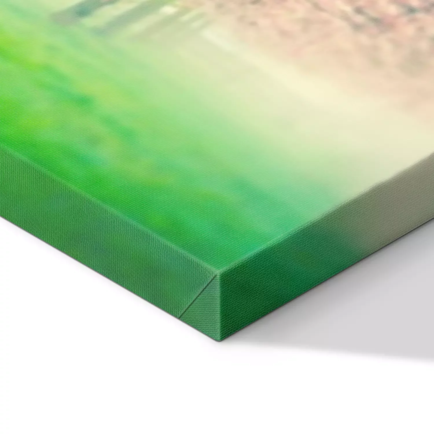 De print wordt aangebracht op hoogwaardig canvas dat op een schildersweefgetouw (spieraam) wordt gespannen. Omdat de print de zijranden bedekt, hoeft het ontwerp niet met een extra kader te worden omlijst. Wij raden ook composities aan die uit meerdere foto's bestaan en zo een coherente compositie vormen.