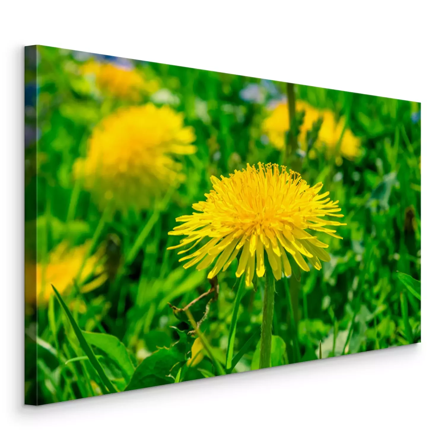 Canvas: Bloeiende paardenbloem tussen het gras