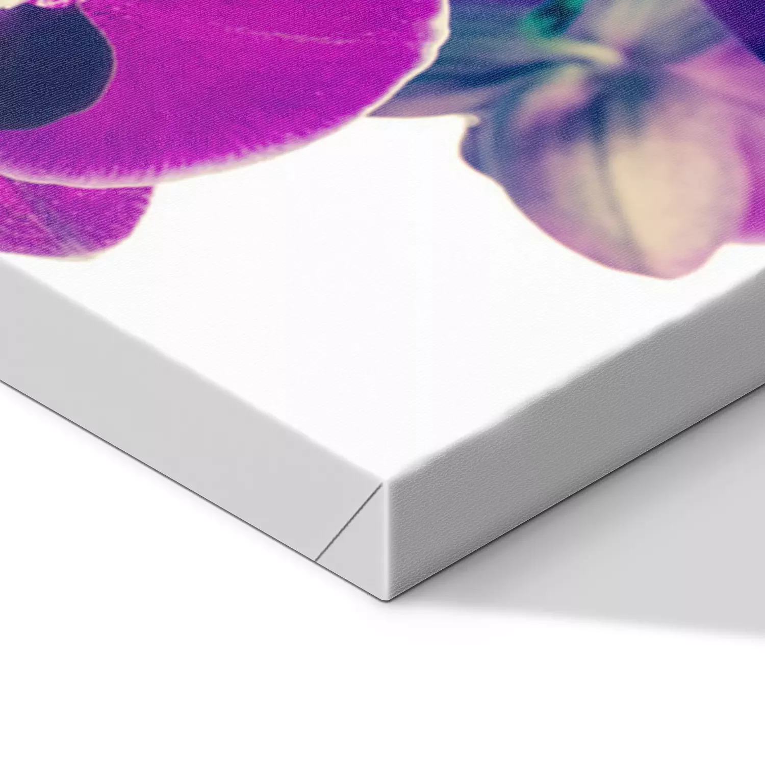 De print wordt aangebracht op hoogwaardig canvas dat op een schildersweefgetouw (spieraam) wordt gespannen. Omdat de print de zijranden bedekt, hoeft het ontwerp niet met een extra kader te worden omlijst. Wij raden ook composities aan die uit meerdere foto's bestaan en zo een coherente compositie vormen.