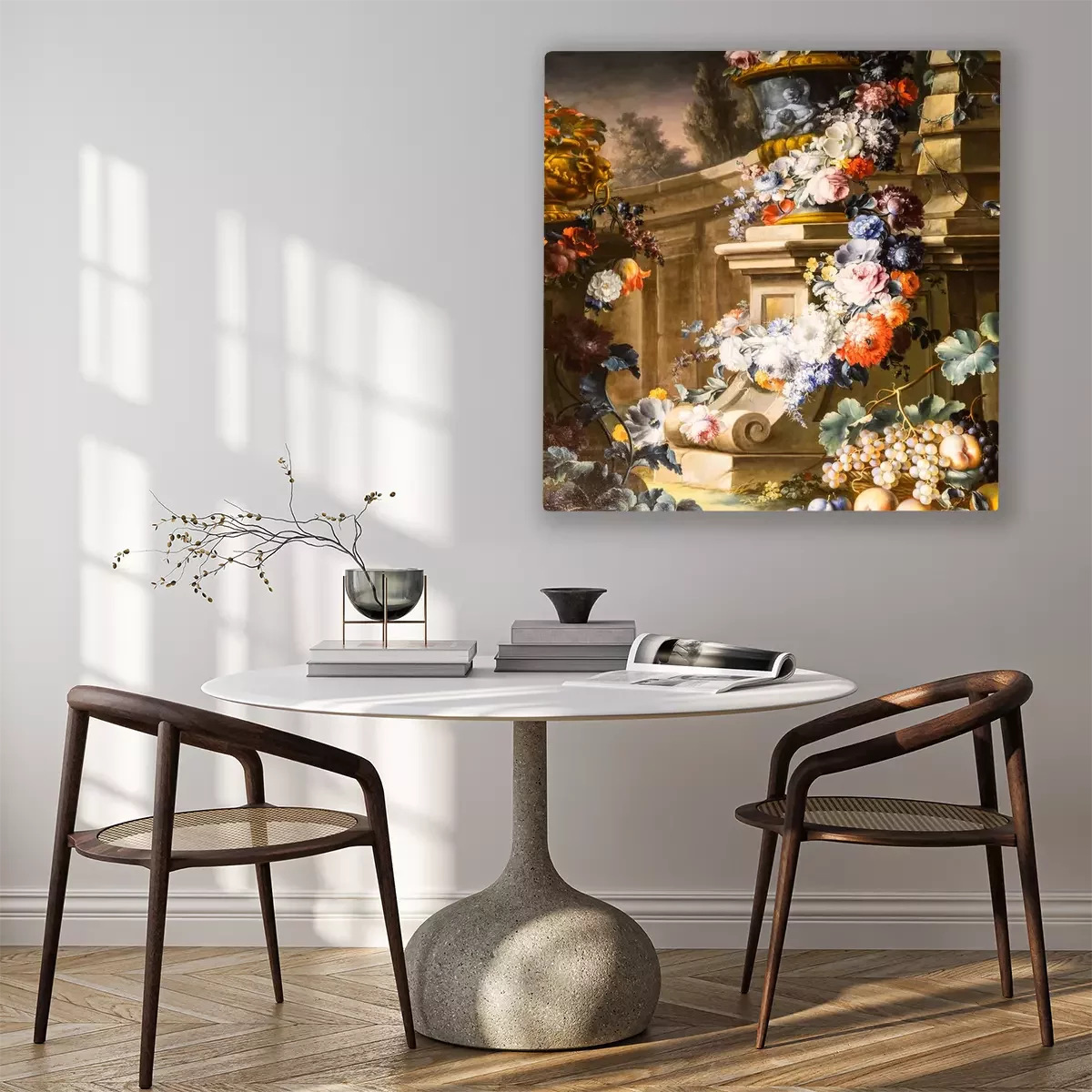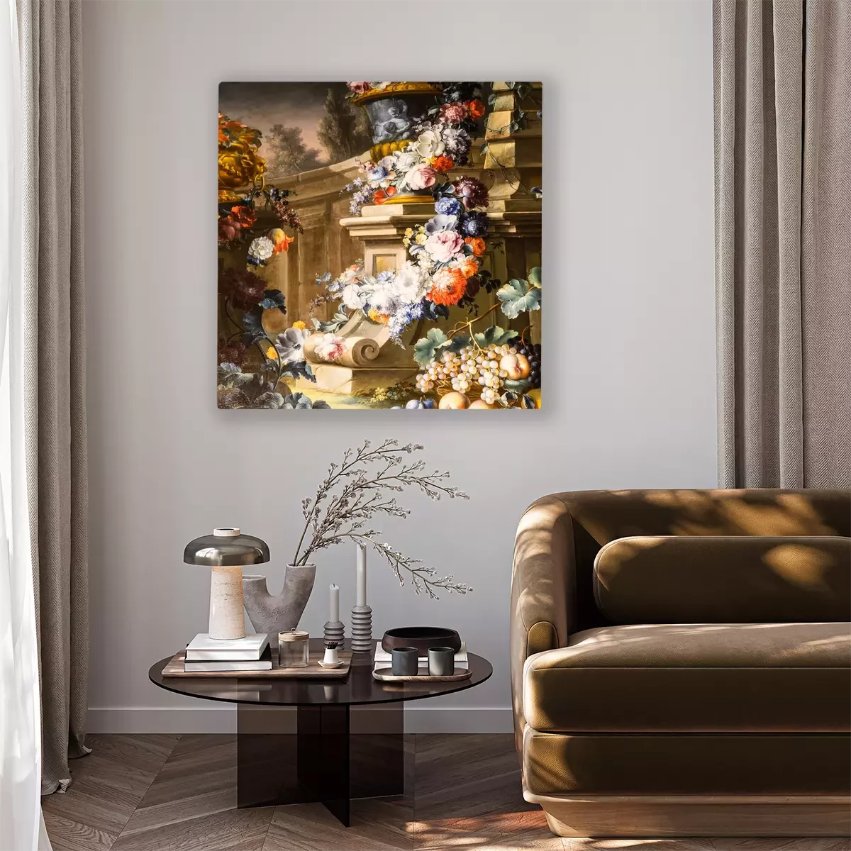 De print wordt aangebracht op hoogwaardig canvas dat op een schildersweefgetouw (spieraam) wordt gespannen. Omdat de print de zijranden bedekt, hoeft het ontwerp niet met een extra kader te worden omlijst. Wij raden ook composities aan die uit meerdere foto's bestaan en zo een coherente compositie vormen.