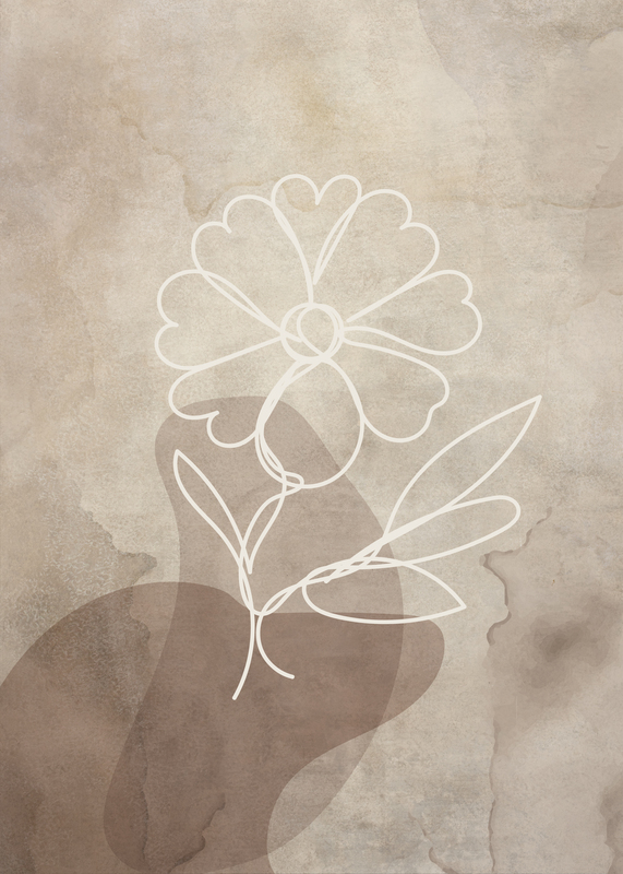 Canvas: Bloem in line art stijl op een aquarelachtergrond