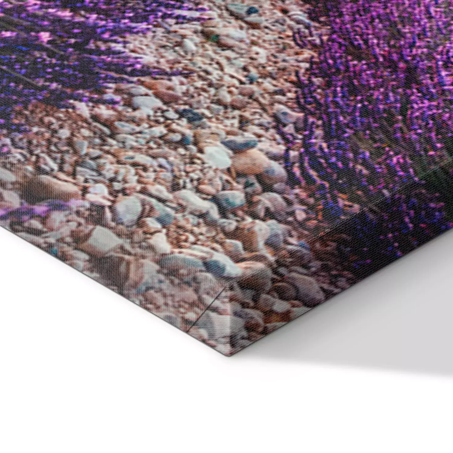 De print wordt aangebracht op hoogwaardig canvas dat op een schildersweefgetouw (spieraam) wordt gespannen. Omdat de print de zijranden bedekt, hoeft het ontwerp niet met een extra kader te worden omlijst. Wij raden ook composities aan die uit meerdere foto's bestaan en zo een coherente compositie vormen.