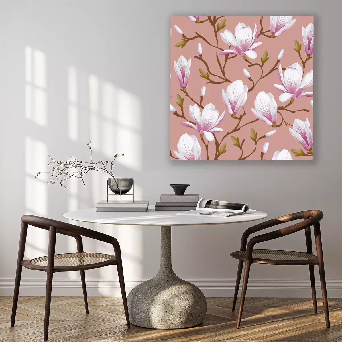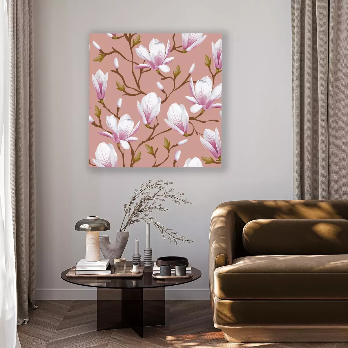Canvas: Bloemen naadloze patroon - magnolia