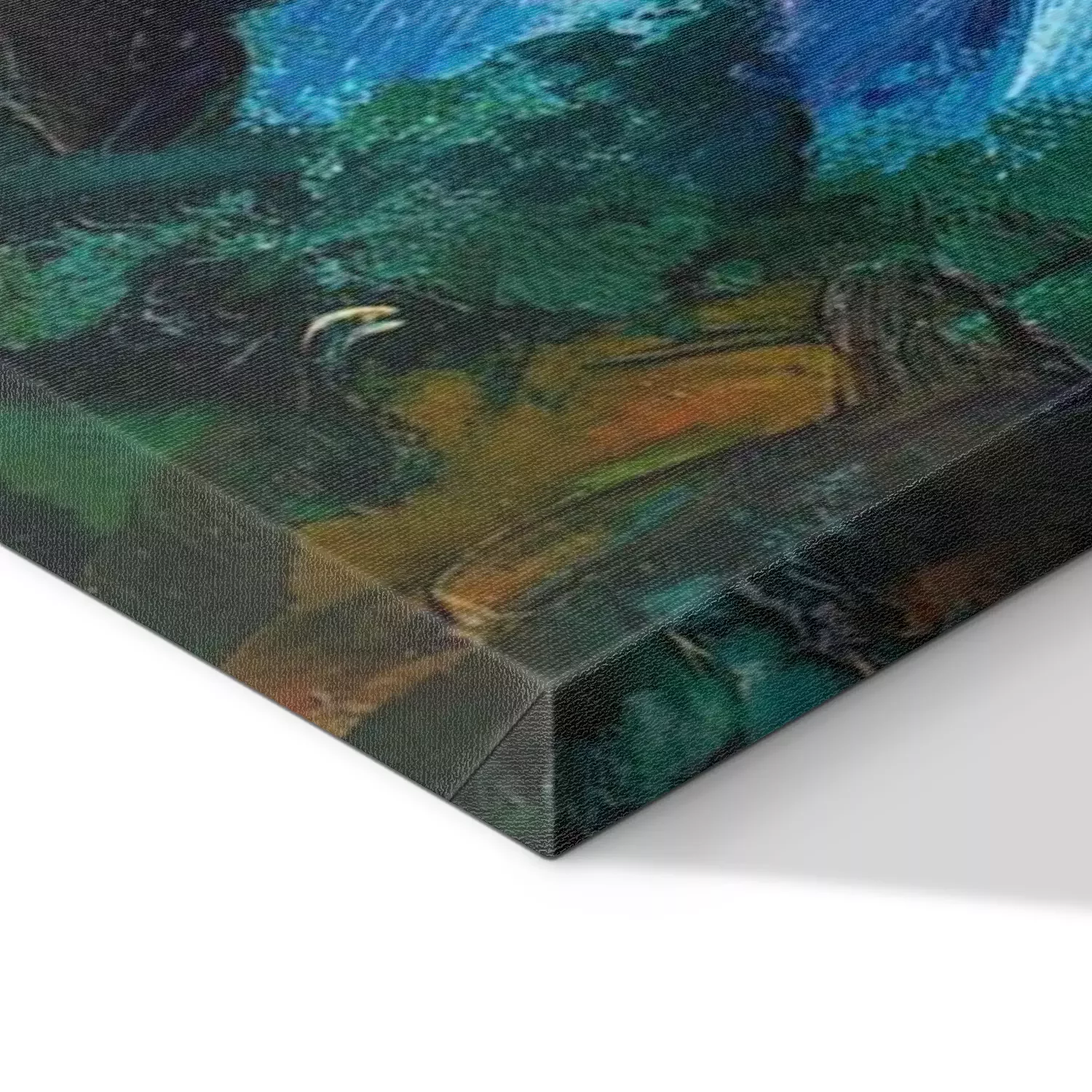 De print wordt aangebracht op hoogwaardig canvas dat op een schildersweefgetouw (spieraam) wordt gespannen. Omdat de print de zijranden bedekt, hoeft het ontwerp niet met een extra kader te worden omlijst. Wij raden ook composities aan die uit meerdere foto's bestaan en zo een coherente compositie vormen.