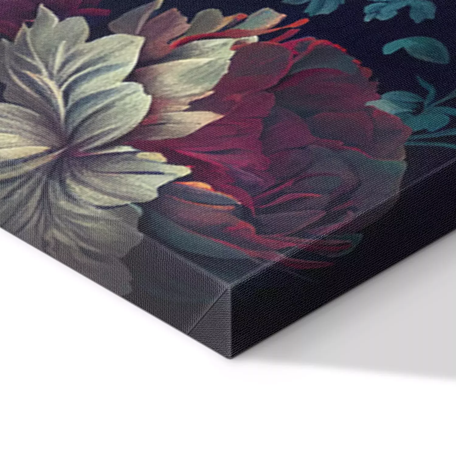 De print wordt aangebracht op hoogwaardig canvas dat op een schildersweefgetouw (spieraam) wordt gespannen. Omdat de print de zijranden bedekt, hoeft het ontwerp niet met een extra kader te worden omlijst. Wij raden ook composities aan die uit meerdere foto's bestaan en zo een coherente compositie vormen.