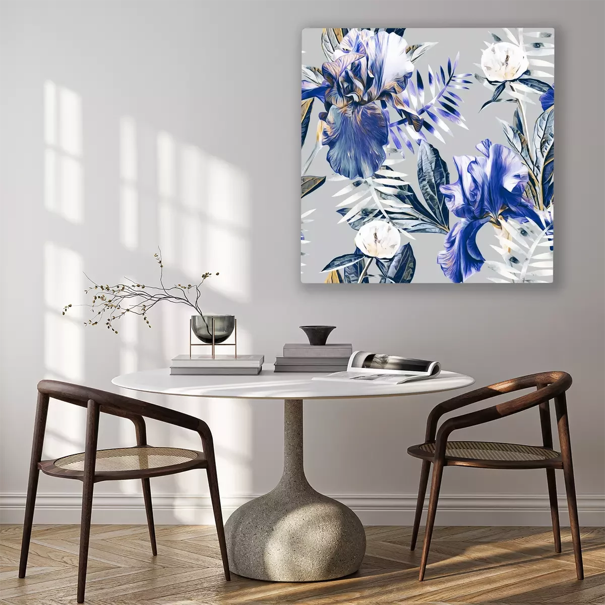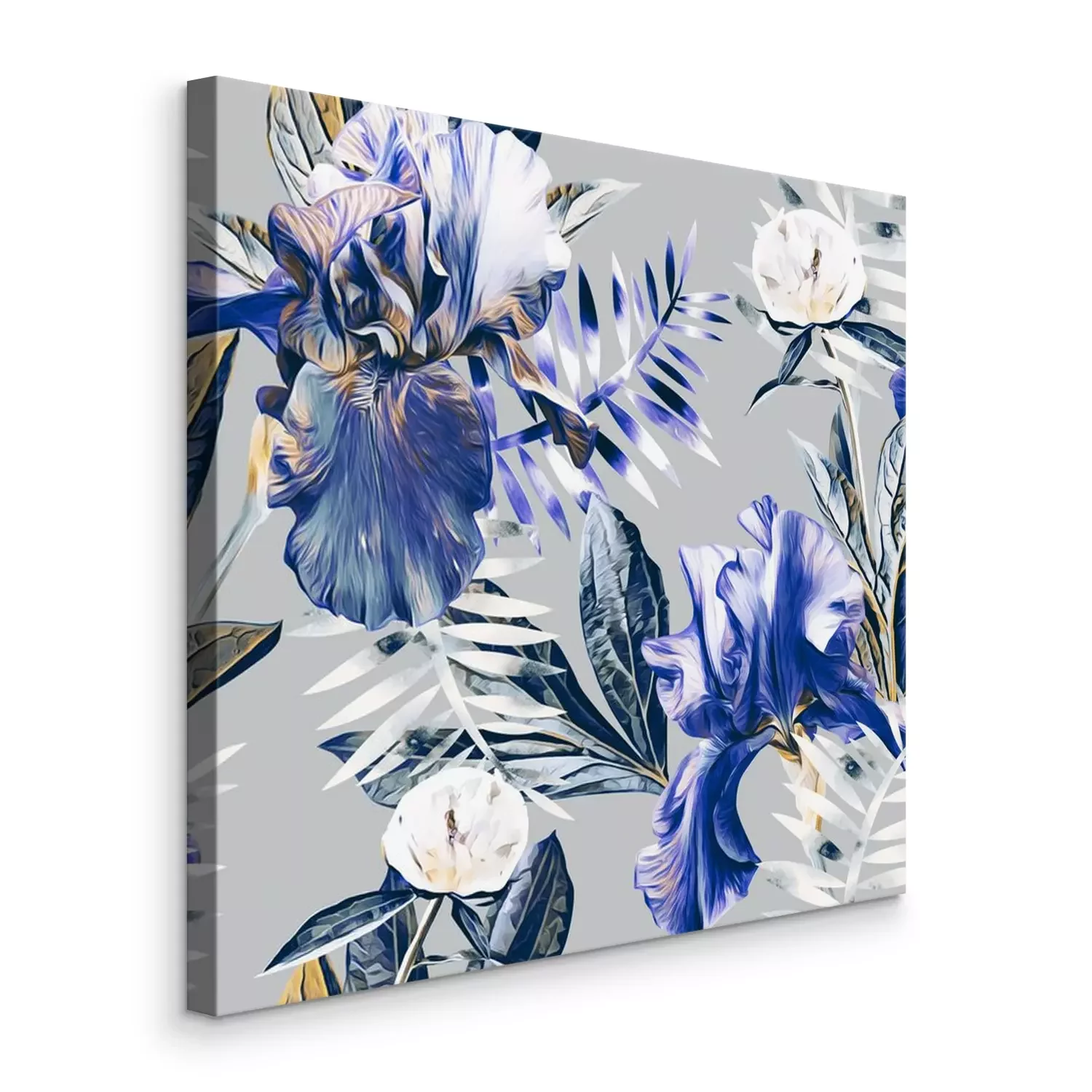 Canvas Bloemsamenstelling van irissen en pioenrozen