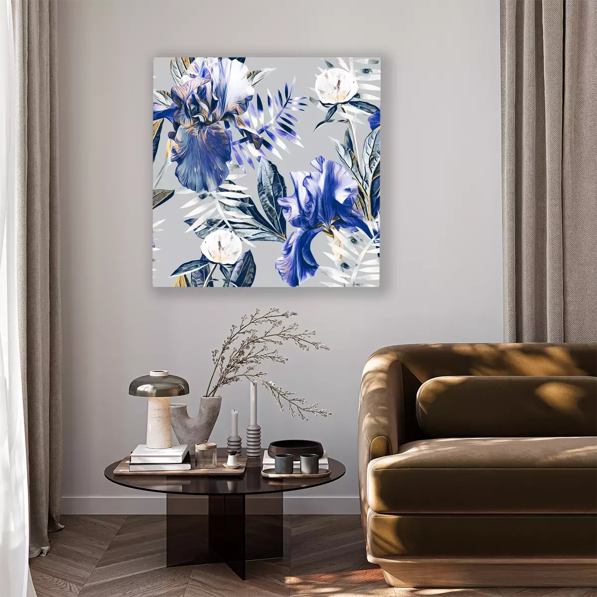 Canvas: Bloemsamenstelling van irissen en pioenrozen