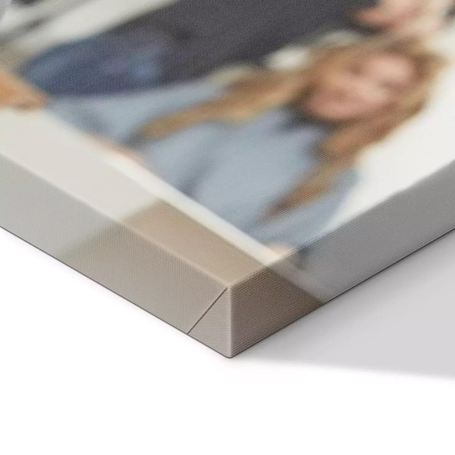 De print wordt aangebracht op hoogwaardig canvas dat op een schildersweefgetouw (spieraam) wordt gespannen. Omdat de print de zijranden bedekt, hoeft het ontwerp niet met een extra kader te worden omlijst. Wij raden ook composities aan die uit meerdere foto's bestaan en zo een coherente compositie vormen.