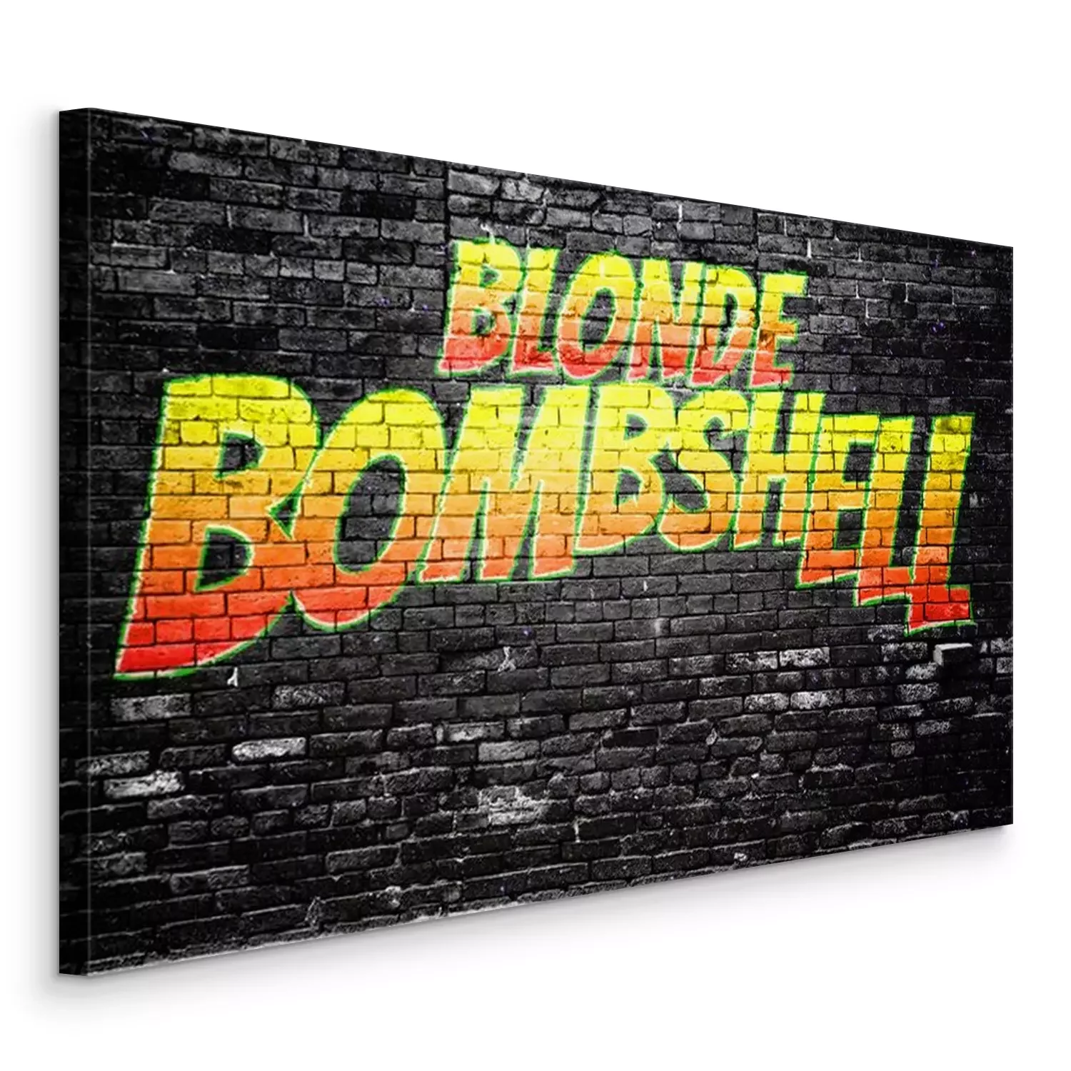Canvas Blonde Bombshell Comic Ziegelsteinmauer Graffiti
