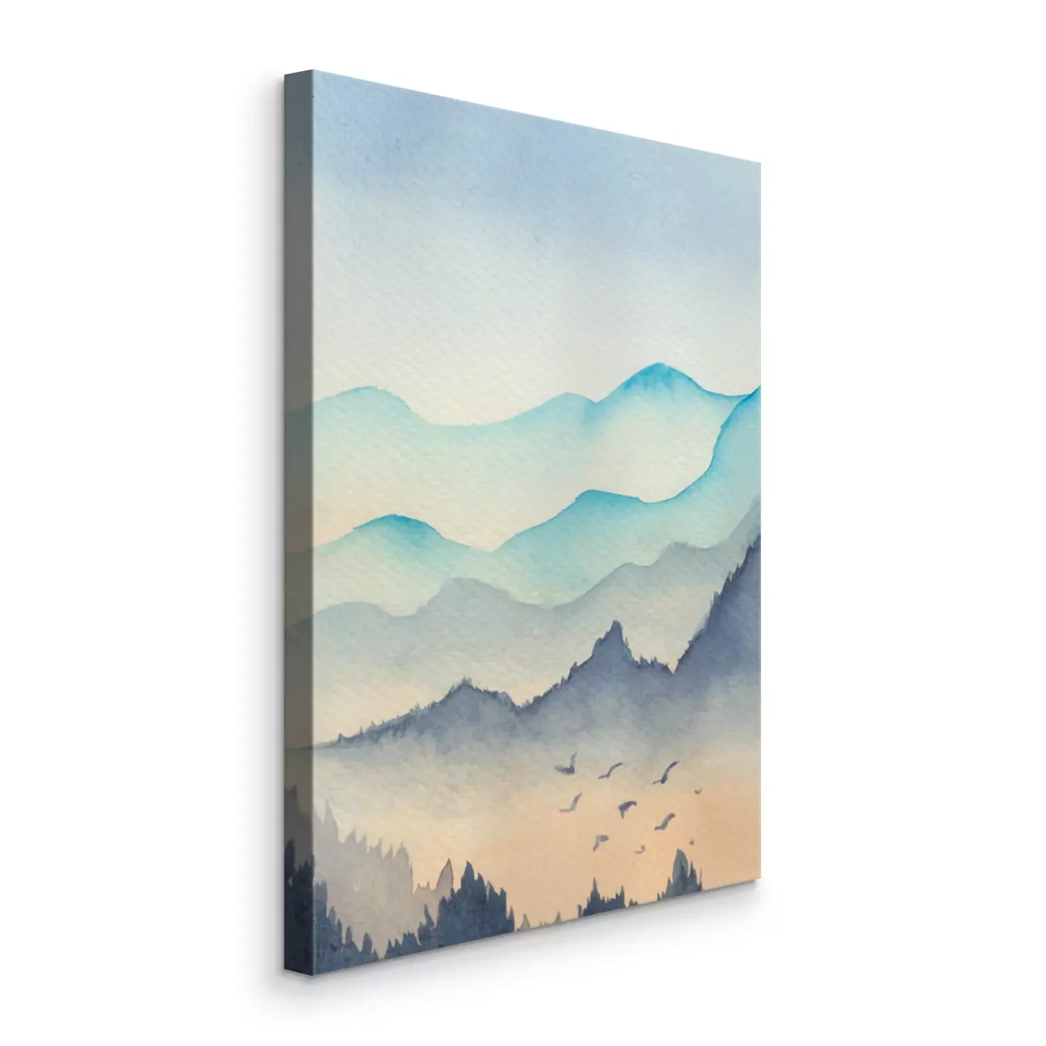 Canvas Blue mountains landscape in the fog with bird