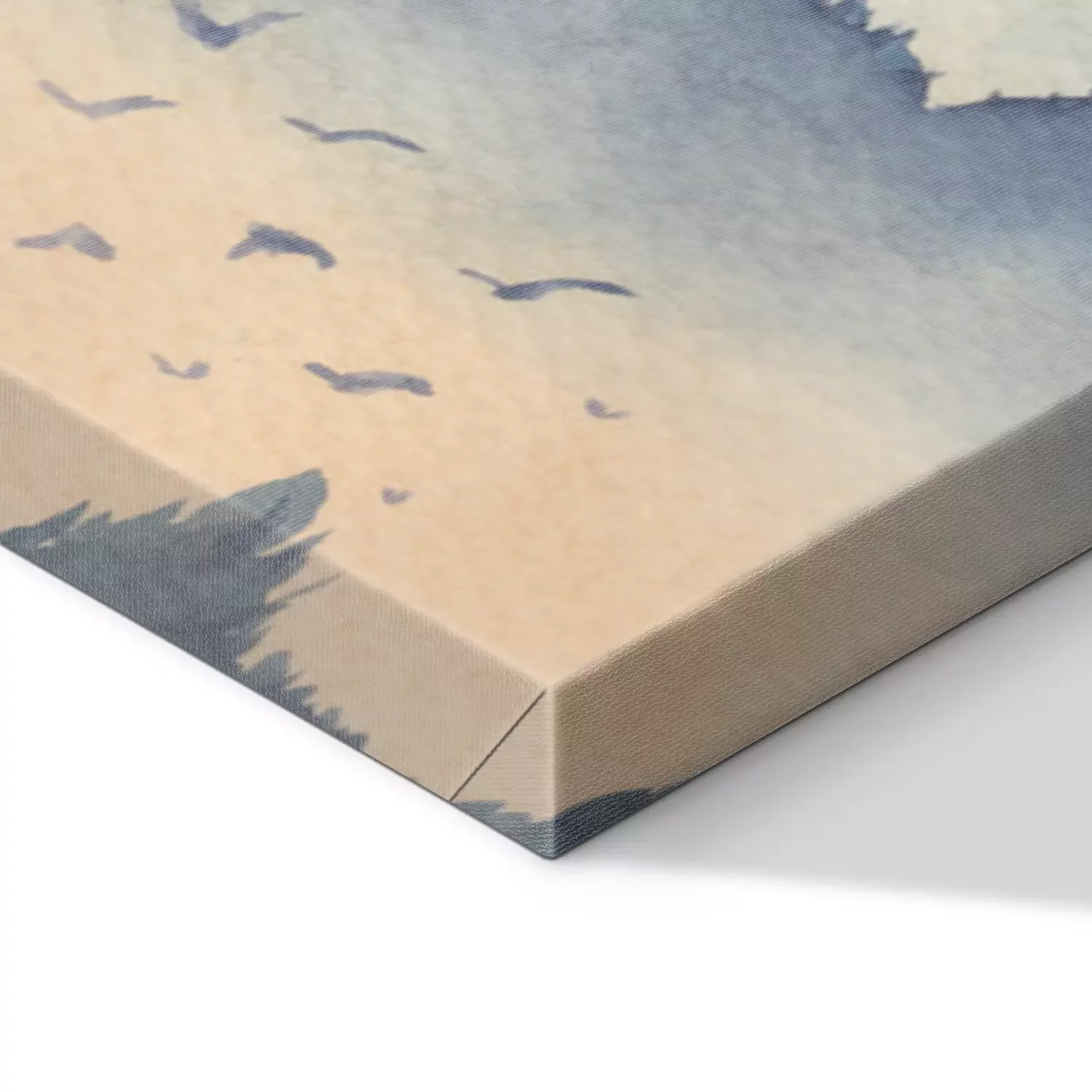 De print wordt aangebracht op hoogwaardig canvas dat op een schildersweefgetouw (spieraam) wordt gespannen. Omdat de print de zijranden bedekt, hoeft het ontwerp niet met een extra kader te worden omlijst. Wij raden ook composities aan die uit meerdere foto's bestaan en zo een coherente compositie vormen.